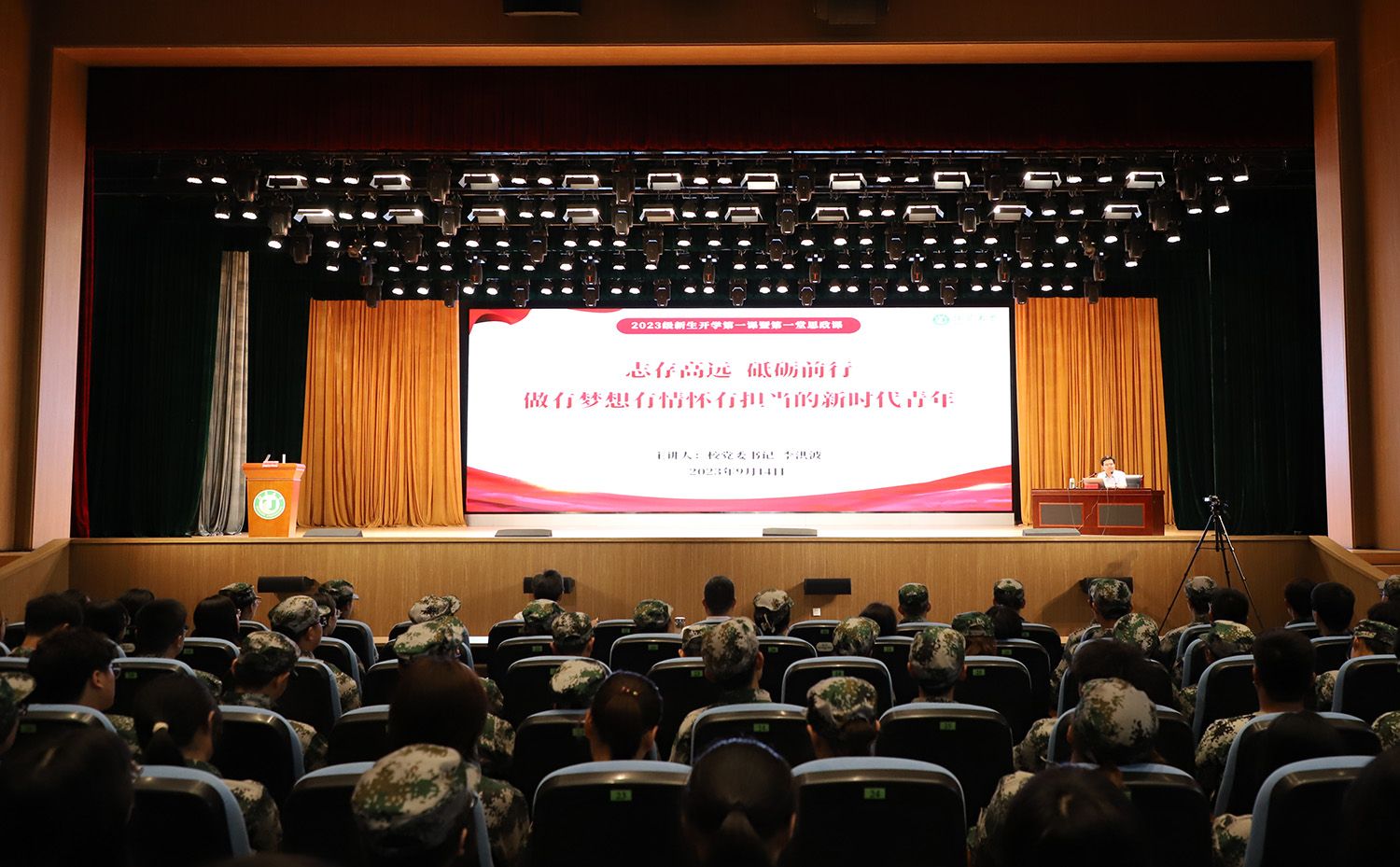 9月14日,学校举办2023级新生开学第一课暨第一堂思政课,帮助新生尽快适应大学生活,更好地成长成才。校党委书记李洪波以《志存高远 砥砺前行 做有梦想有情怀有担当的新时代青年》为题,为全体2023级新生授课。