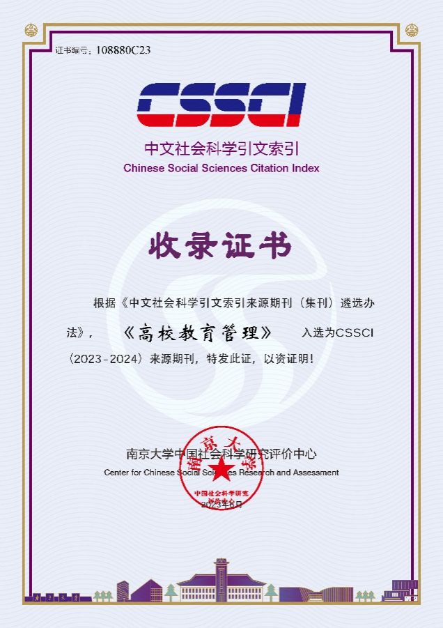 近日,我校杂志社收到南京大学中国社会科学研究评价中心颁发的收录证书,我校主办的《高校教育管理》和《乐鱼官方体育网站学报(社会科学版)》继续入选CSSCI(2023—2024)来源期刊和扩展版来源期刊。