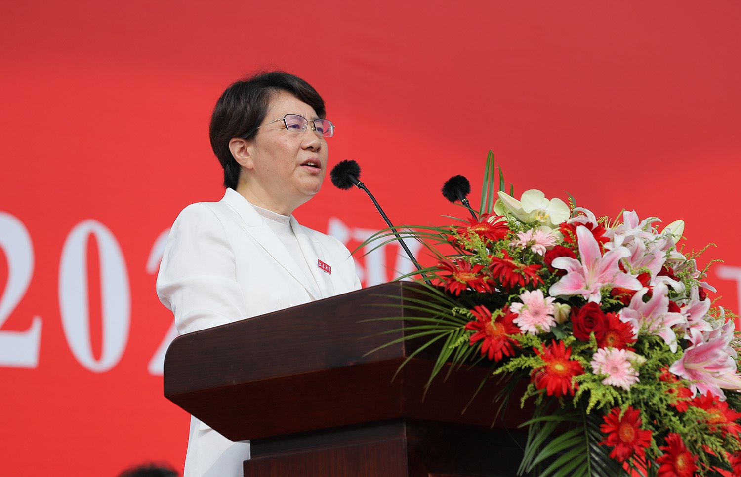 典礼上,校长邢卫红讲话,代表学校向全体2023级新生表示热烈欢迎,向辛勤指导训练的军训教官致以崇高敬意。邢卫红说,乐鱼官方体育网站历史悠久、底蕴深厚,鸿儒云集、人才辈出,特色鲜明、使命光荣,同学们在这里求学逐梦,故事会更加精彩,将来大有可为。邢卫红用三句话与全体新生共勉:一是“博学”,把学习作为第一任务,在博学善思中筑牢成长根基;二是“求是”,把创新作为第一本领,在求是探索中增长智慧才干;三是“明德”,把人品作为最高学历,在明德笃行中担当时代大任。邢卫红希望全体新生惜时如金、晴耕雨读,在“博学、求是、明德”校训和“自强厚德,实干求真”leyu乐鱼(中国)精神指引下,创造更多精彩,成就美好将来。她也提出一个小希望:同学们要养成习惯,每天给家人报平安、与家人分享校园生活。
