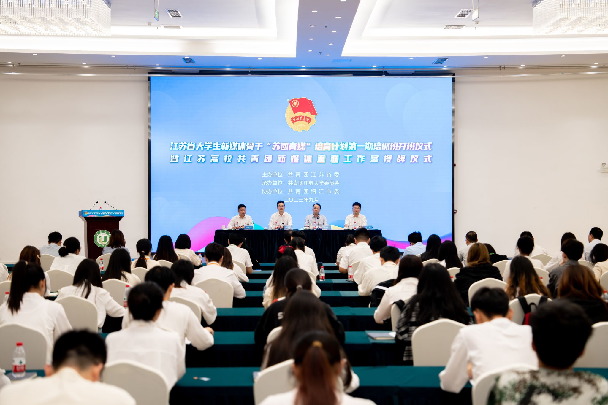 9月22日,江苏省大学生新媒体骨干“苏团青媒”培育计划第一期培训班开班仪式暨江苏高校共青团新媒体直联工作室授牌仪式在我校青教公寓举行。