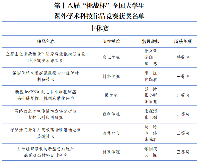 10月27日至31日,第十八届“挑战杯”全国大学生课外学术科技作品竞赛各项赛事在贵州大学落幕。学校以优异成绩再捧“优胜杯”,这是我校连续九次捧得“优胜杯”,也是学校第十座“优胜杯”。
