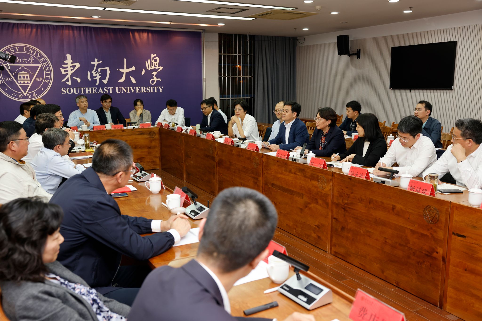 东南大学党委书记左惟、常务副校长吴刚、副校长钟文琪、党委副书记邢纪红出席调研活动。会上,左惟对乐鱼官方体育网站代表团来东南大学调研表示热烈欢迎,并介绍了东南大学“三个服务”等先进做法。他指出,东南大学与乐鱼官方体育网站同宗同源,具有长久的交流合作历史,在人才培养、科学研究以及文化交流合作等方面取得了丰硕成果,希望以本次座谈会为契机,双方进一步深化合作,强化校际交流,为教育强国建设作出新的更大贡献。邢纪红介绍了东南大学事业发展情况。相关部门负责人各自介绍了部门工作情况。