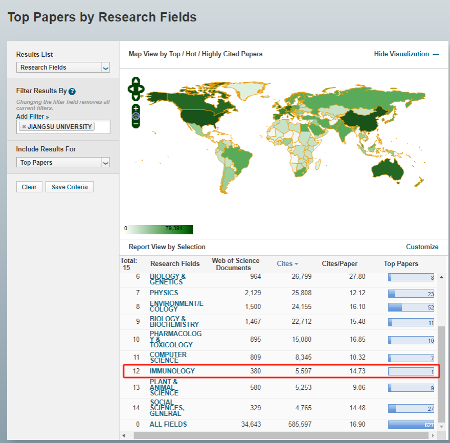 近日,科睿唯安发布了最新ESI数据,全球共有8917家科研机构上榜,其中包含432所中国内地高校。数据显示,乐鱼官方体育网站免疫学学科首次进入ESI全球排名前1%。截至目前,我校进入ESI全球前1%的学科数达14个,其中工程学、化学、农业科学3个学科排名前1‰。