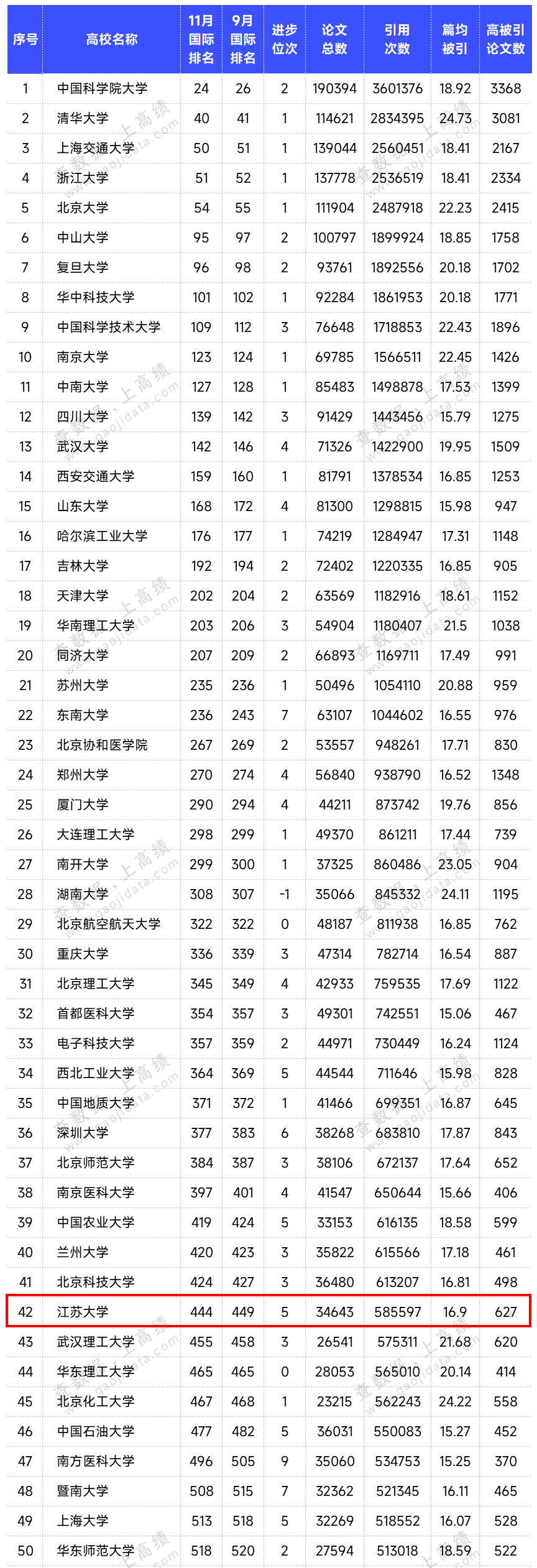 数据显示,乐鱼官方体育网站国际排名444位,较9月提升5位;位列中国内地高校42位。