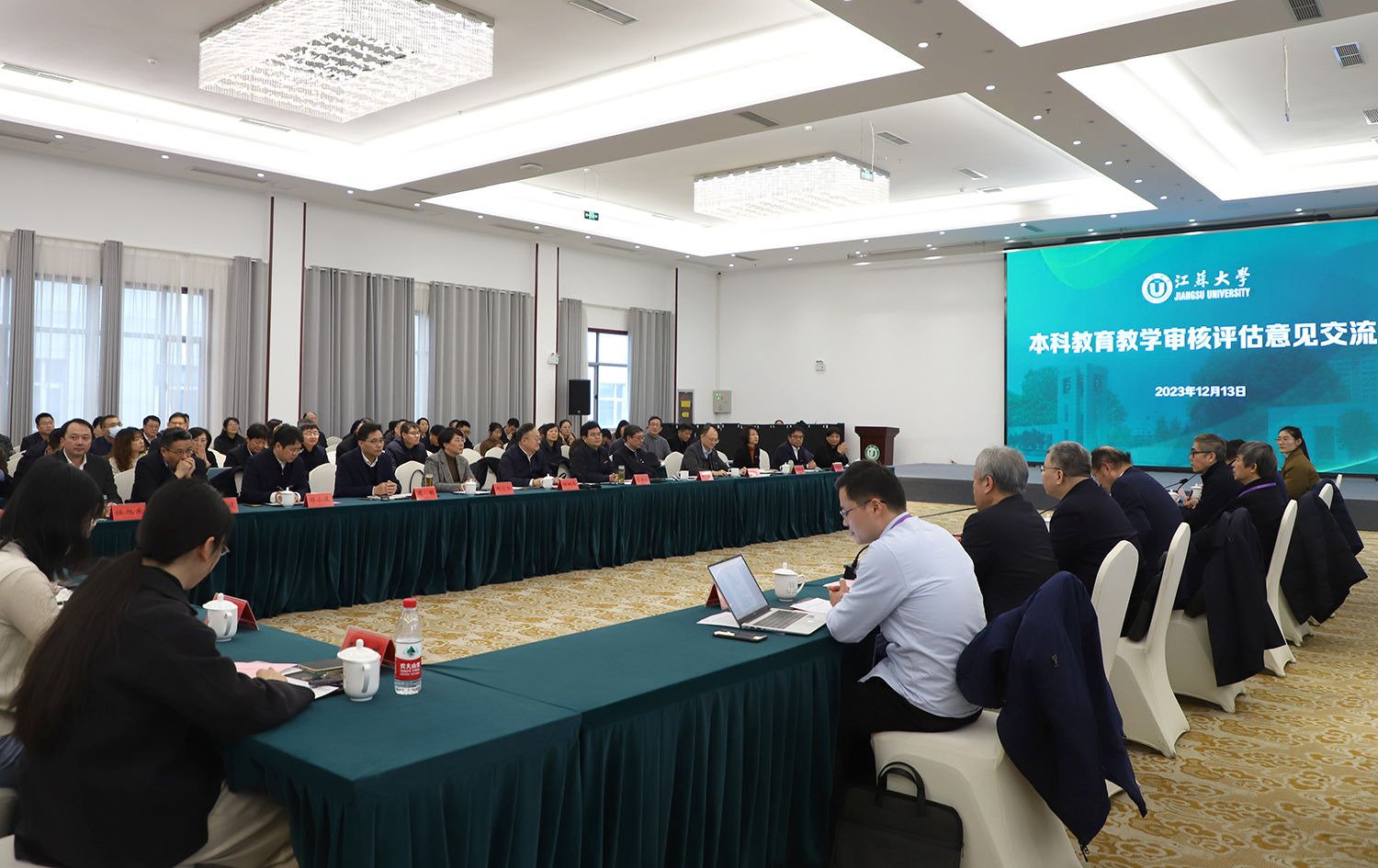 12月13日下午,乐鱼官方体育网站本科教育教学审核评估专家意见交流会在青教公寓多功能厅举行。专家组组长、贵州大学校长宋宝安,专家组副组长、陕西师范大学原党委书记程光旭和专家组成员,省教育厅副厅长杨树兵,省教育厅高教处、省教育评估院负责人,我校全体校领导、党委常委,主要职能部门负责人,各教学机构党政主要负责人、分管教学领导,校本科教学督导,教师代表,学生代表等出席会议。
