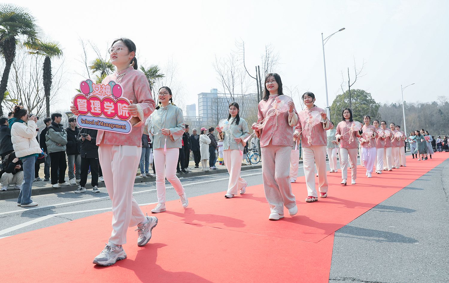 早春leyu乐鱼(中国),处处是生机勃勃的景象。3月8日,是第114个国际劳动妇女节,学校在梅园举办“美丽邂逅,梦想绽放”庆祝“三八”国际妇女节活动暨首届梅樱节开幕式。由女教工、女大学生、女企业家组成的33支队伍共聚梅园,借满园春色,用“红毯秀”的形式展示女性风采,庆祝自己的节日。