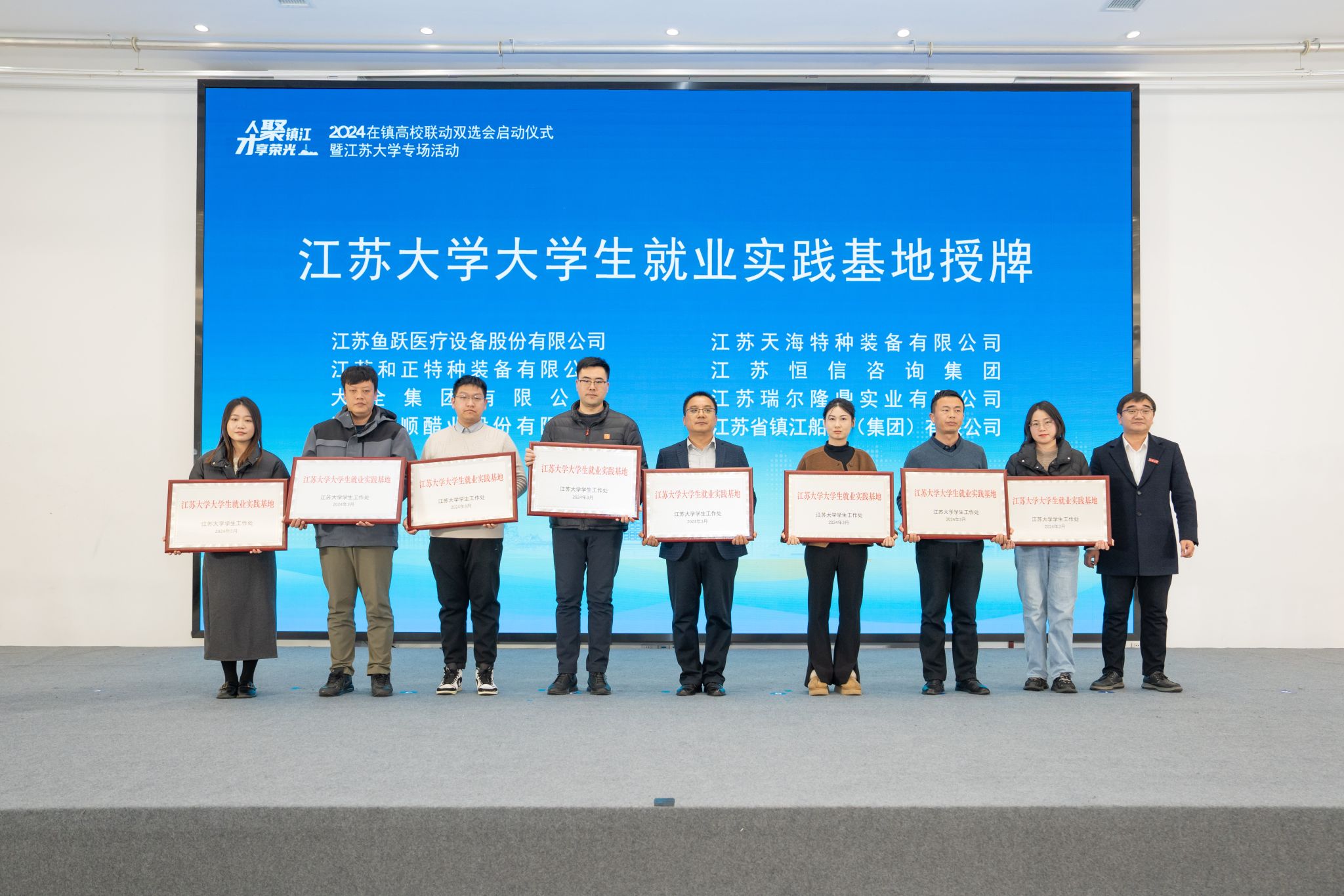 学校与镇江市进行了“镇江市优秀高校人才工作站”揭牌、“大学生就业实践基地”授牌等仪式,并正式启动2024在镇高校联动双选会,持续扩大政校企三方合作的覆盖面与影响力。