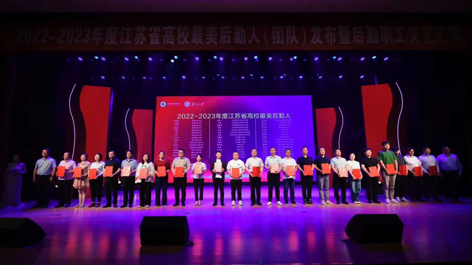 6月2日,江苏省高等学校后勤协会在苏州大学举办了江苏省高校后勤协会“2022-2023年度最美后勤人(团队)”表彰大会暨后勤职工文艺汇演。我校获评“江苏省高校后勤学生劳动教育示范基地”称号(全省仅15所高校),乐鱼官方体育网站后勤管理处饮食服务团队荣获“最美后勤团队”称号,许凤青、诸建庆、孔庆镇、施明玲四人被授予“最美后勤人”称号。