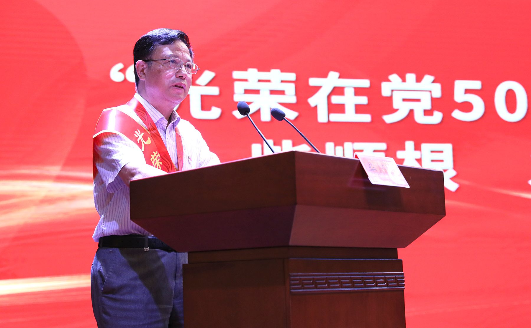 “光荣在党50年”党员代表,乐鱼官方体育网站纪委原书记、校关心下一代工作委员会常务副主任柴顺根同志发言,并带领新党员代表入党宣誓、全体党员代表重温入党誓词。