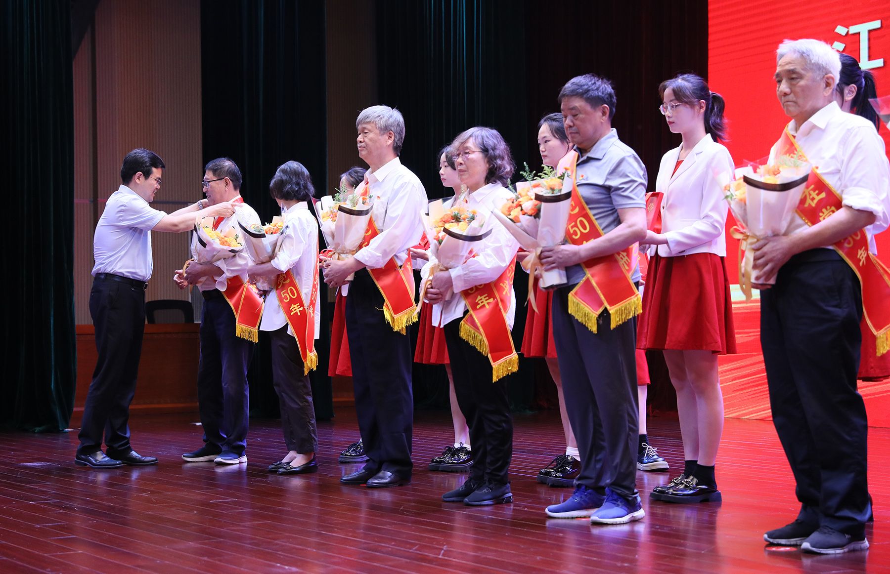 为庆祝中国共产党成立103周年,引导广大师生党员牢记初心使命,永葆奋斗本色,6月26日,乐鱼官方体育网站举行“光荣在党50年”纪念章颁发仪式暨党纪学习教育专题党课。