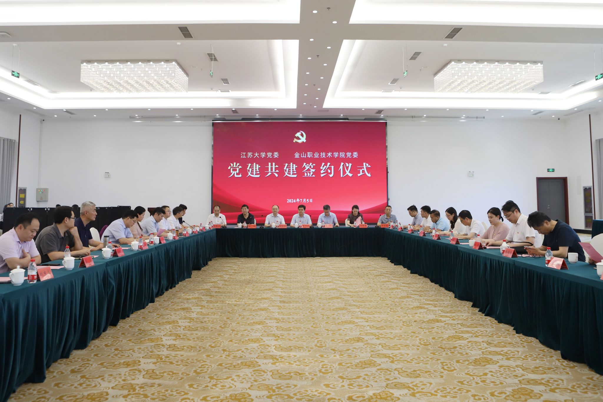 7月5日,乐鱼官方体育网站与金山职业技术学院党建共建签约仪式在青教公寓三江厅举行。校党委书记李洪波,金山职业技术学院党委书记徐铭,省委教育工委组织处、市委教育工委相关负责同志出席共建签约仪式,两校相关职能部门及院系负责人参加仪式。校党委常委、组织部部长杨敬江主持签约仪式。