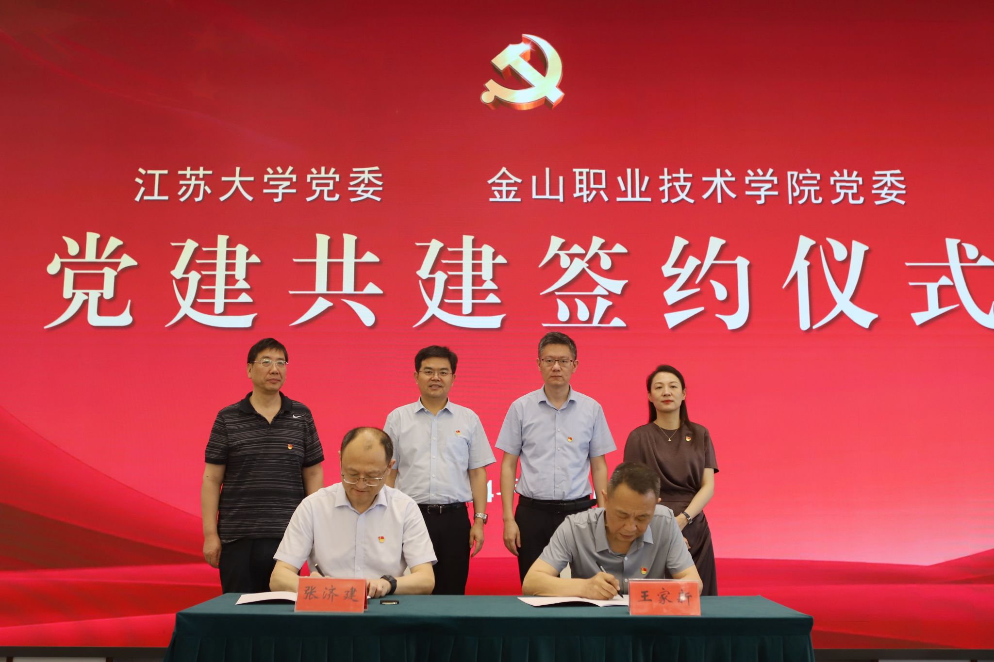 校党委副书记张济建与金山职业技术学院党委副书记、纪委书记王家新代表双方签订党建共建协议。
