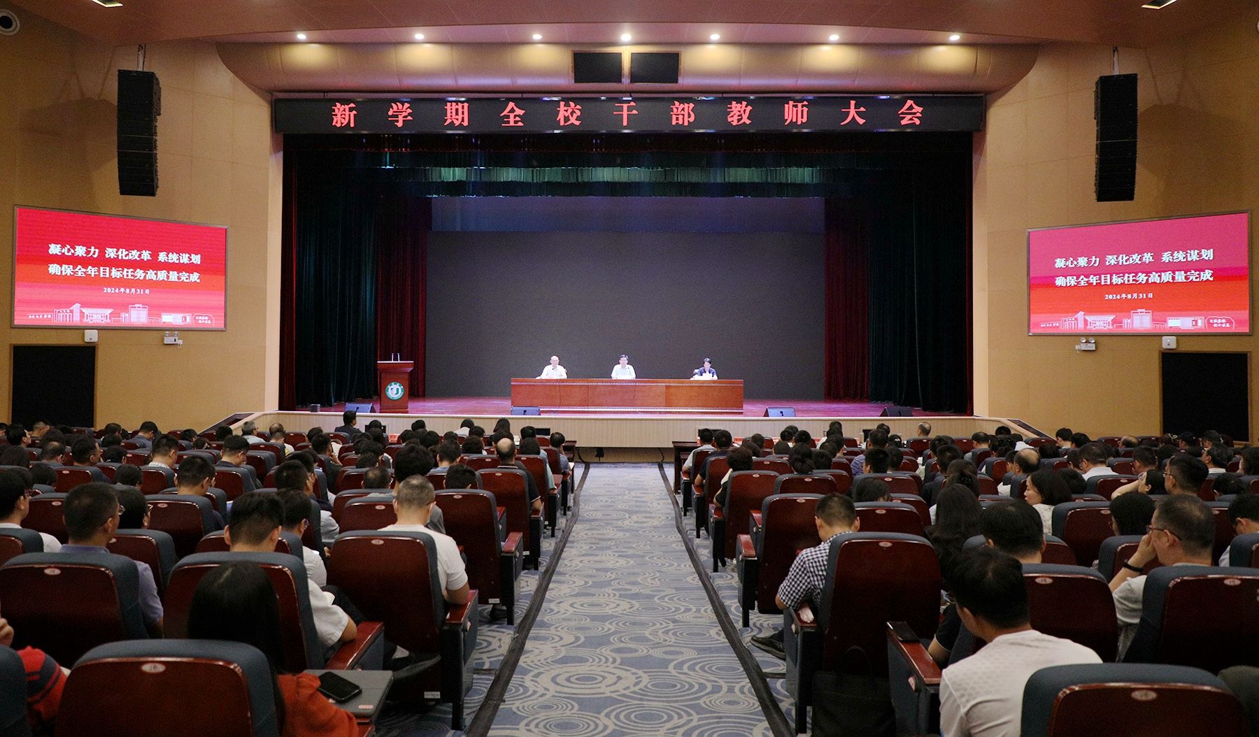 8月31日,学校在小礼堂召开新学期全校干部教师大会,回顾总结上半年工作,结合新形势新要求对下半年工作进行部署,进一步凝心聚力、深化改革、系统谋划,确保高质量完成全年目标任务。