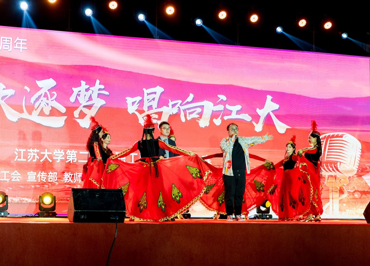 演唱曲目,既有慷慨激昂的红歌,又有声声入耳的流行音乐和引人入胜的民族曲调,也不乏优秀的原创歌曲,引起了现场观众的热烈反响和强烈共鸣。同时,来自教职工拉丁舞俱乐部、大学生溪韵舞协、海外学院留学生、京江学院灵动舞协、leyu乐鱼(中国)附院旗袍社团的师生同台助演,进一步增强了演出的观赏性和吸引力。