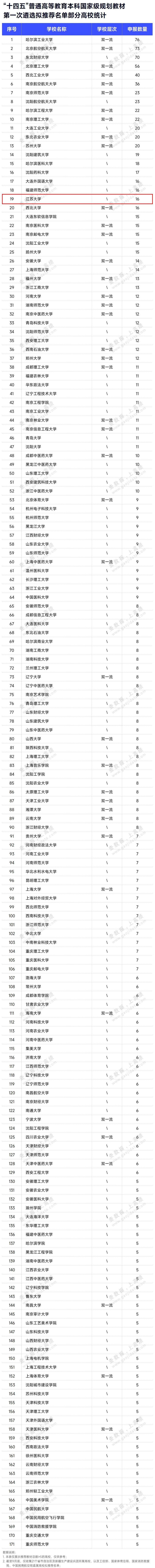 近日,各省、自治区、直辖市及有关部门陆续发布“十四五”普通高等教育本科国家级规划教材第一次遴选拟推荐名单,共462所高校的两千余本教材入选。