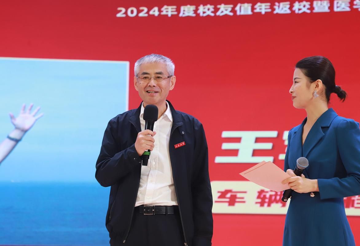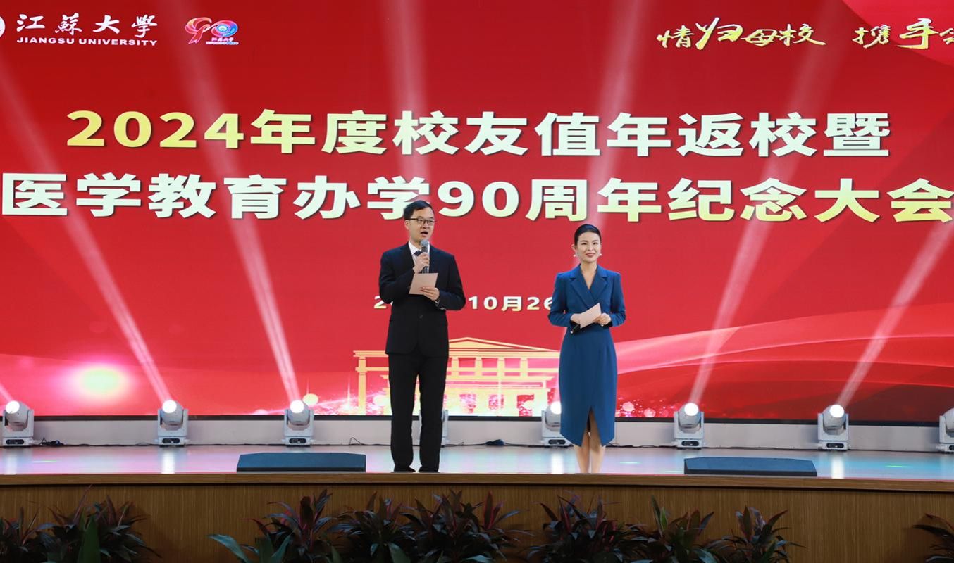 校长邢卫红,校党委副书记张济建,校党委常委、副校长邹小波,校党委常委、副校长蔡英凤,校党委原副书记、纪委原书记曹友清,校关工委常务副主任、纪委原书记柴顺根,原副校长宋余庆,原镇江医学院副院长仇锦波,徐州医科大学党委常委、副校长刘慎军,南京鼓楼医院国家区域医疗中心主任、安徽医科大学第二附属医院院长孙凌云,江苏省铸造学会理事长陆文龙,江苏卫生健康职业学院院长邵海亚,无锡卫生高等职业技术学校校长陈道桢,汽车84届校友、40周年值年返校代表王军华,宁波海尔施生物医药有限公司副总裁、医学检验94届校友、30周年值年返校代表王子瑜,镇江市优秀教育工作者、镇江中学教师、数学04届校友、20周年值年返校代表谢红慧,上汽集团整车运动中心助理总工、车辆工程14届校友、10周年值年返校代表方琛,国药器械江苏医疗科技有限公司总经理夏夺广,乐鱼官方体育网站医学院教授代表黄诒森,以及乐鱼官方体育网站校友会常务理事,乐鱼官方体育网站教育发展基金会理事、监事,学校相关部门负责人,各学院校友会会长、秘书长,乐鱼官方体育网站各附属医院、临床医学院、教学基地、合作单位的嘉宾,近300名校友等出席纪念大会。