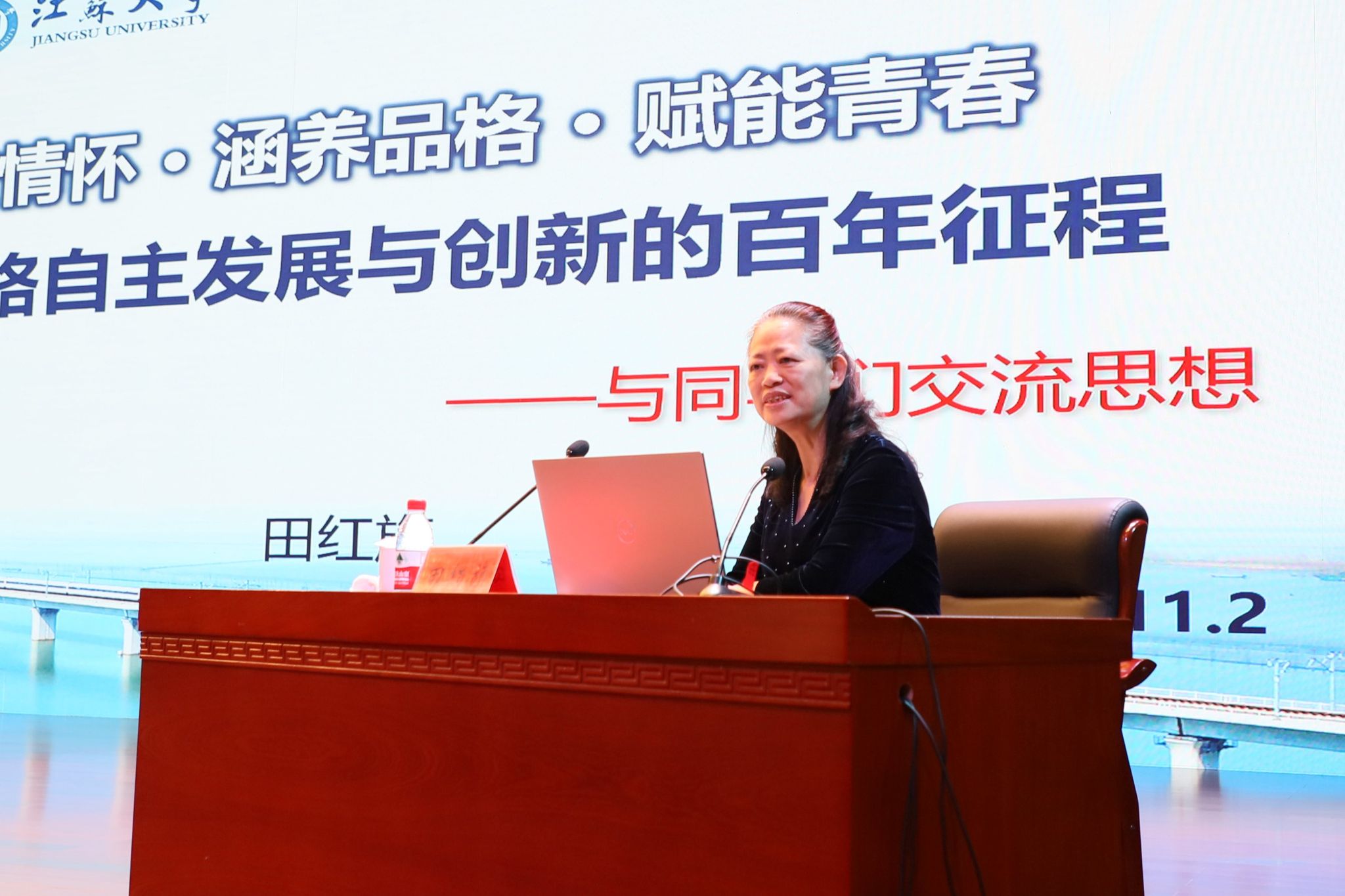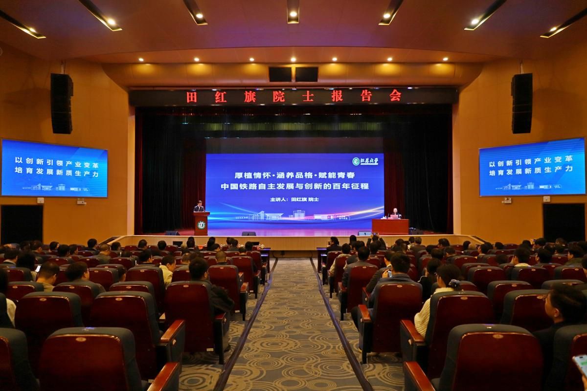 11月2日,中国工程院院士、中南大学原校长田红旗教授应邀为我校师生作题为《厚植情怀·涵养品格·赋能青春——中国铁路自主发展与创新的百年征程》的报告。报告会由校党委书记李洪波主持。