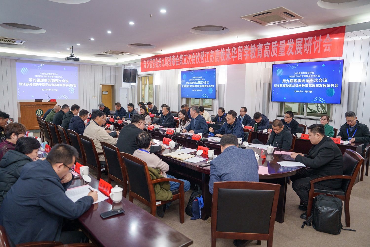 11月30日,江苏省高等教育学会外国留学生教育管理研究委员会(以下简称“江苏留管会”)第九届理事会第五次会议暨江苏高校来华留学教育高质量发展研讨会在乐鱼官方体育网站举行。江苏省教育厅副厅长杨树兵、对外合作与交流处处长施蕴玉、四级调研员李勤径出席会议。江苏留管会副理事长俞晓南、34个理事高校的代表和学会咨询专家参加会议,会议由副理事长兼秘书长张海军主持。
