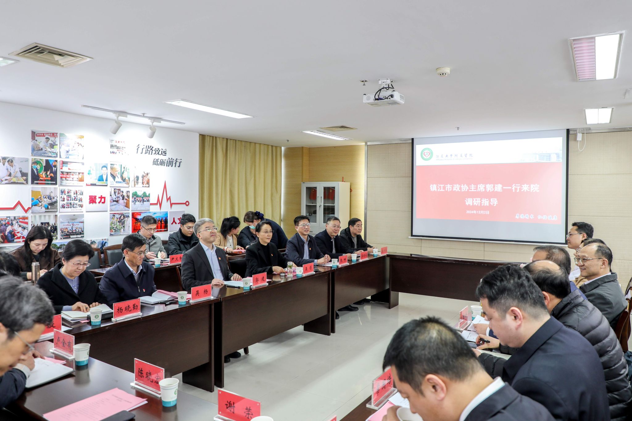 12月2日,镇江市政协主席郭建率调研组到附属医院调研指导,乐鱼官方体育网站党委副书记、附属医院党委书记张济建陪同调研。附属医院院长陈吉祥主持座谈会。