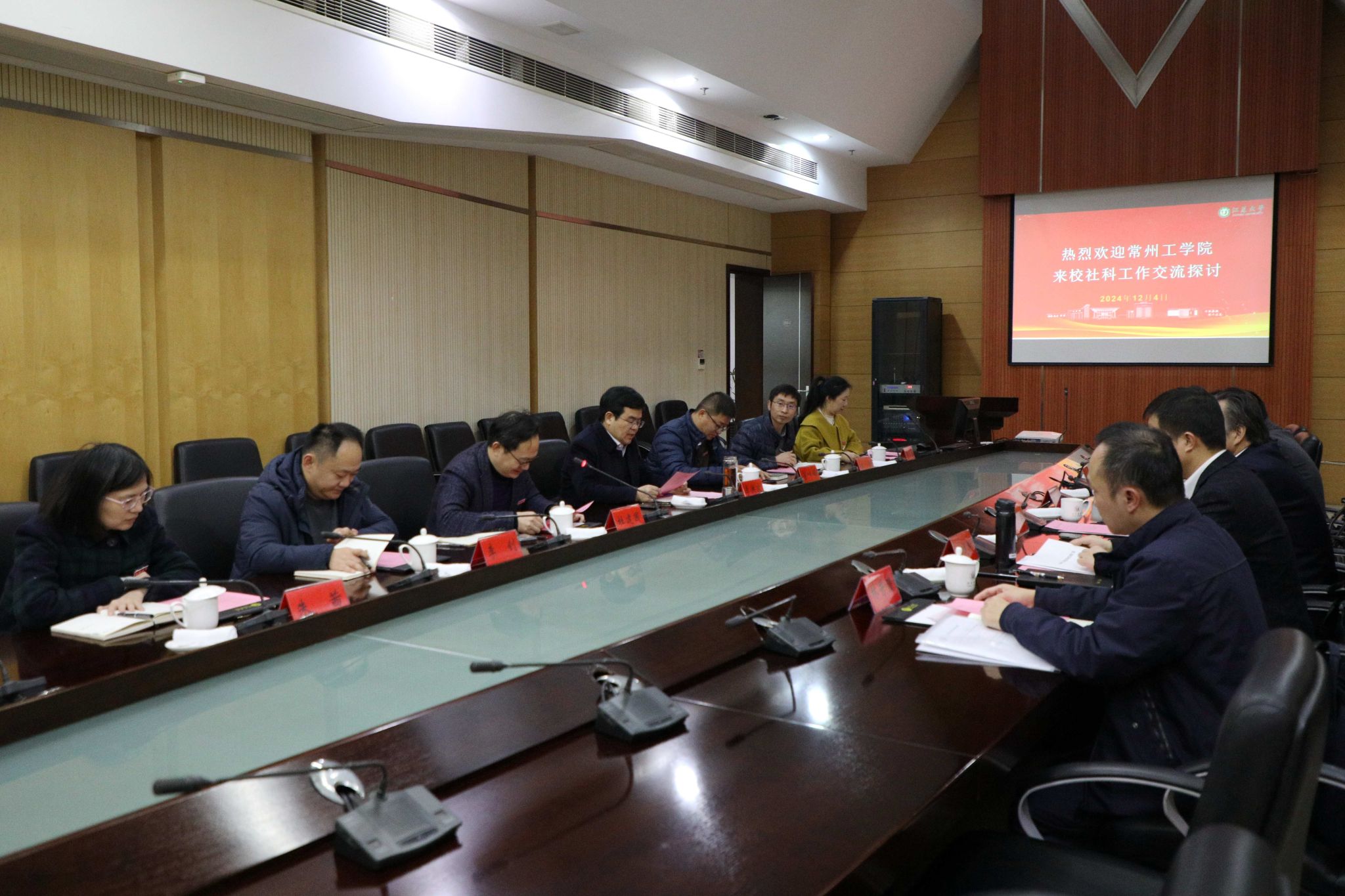 12月4日,常州工学院党委书记汤正华、副院长韩建刚一行来校交流调研人文社科事业发展举措。校党委书记李洪波、副校长李红接待来访一行,社会科学处全体工作人员参加交流活动。