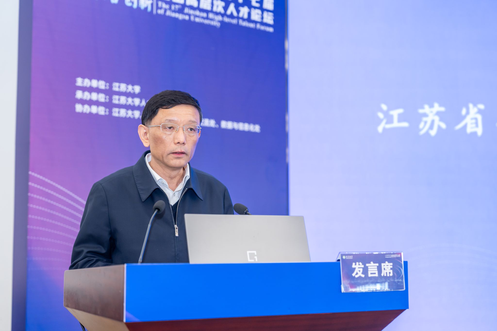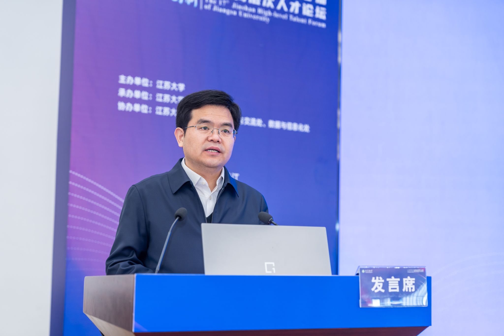 12月28日,论坛开幕式在学校青教楼三江厅举行。江苏省委组织部副部长李孝峰,江苏省委教育工委副书记、省教育厅党组成员潘漫,镇江市委常委、组织部部长张娟,江苏省委组织部人才工作处处长、一级调研员郁苍,江苏省教育厅教师工作处副处长杨菲菲,镇江市委组织部副部长郭鑫,校党委书记李洪波,校党委副书记张济建,校党委常委、副校长李红、任旭东,校党委常委、组织部部长杨敬江等领导出席开幕式,学校相关职能部门、各教学科研单位党政主要负责人、部分高层次人才和教师代表等200余人参加开幕式。开幕式由校党委常委、副校长王景全主持。
