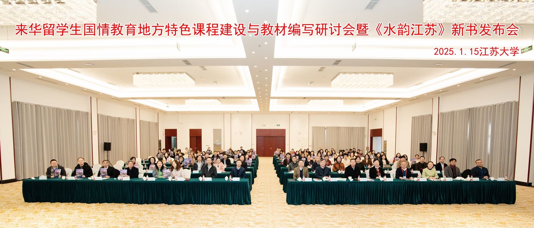 1月15日,由乐鱼官方体育网站与上海外语教育出版社共同主办的来华留学生国情教育地方特色课程建设与教材编写研讨会暨《水韵江苏》新书发布会在青教公寓三江厅举行。上海外语教育出版社社长丁毅、江苏高等教育学会外国留学生管理委员会副秘书长兼秘书长张海军,南京大学、上海交通大学教授程爱民及我校党委宣传部、教务处、文学院、外国语学院相关领导出席会议,来自全国21个省(自治区、直辖市)的百余名专家学者参加会议。