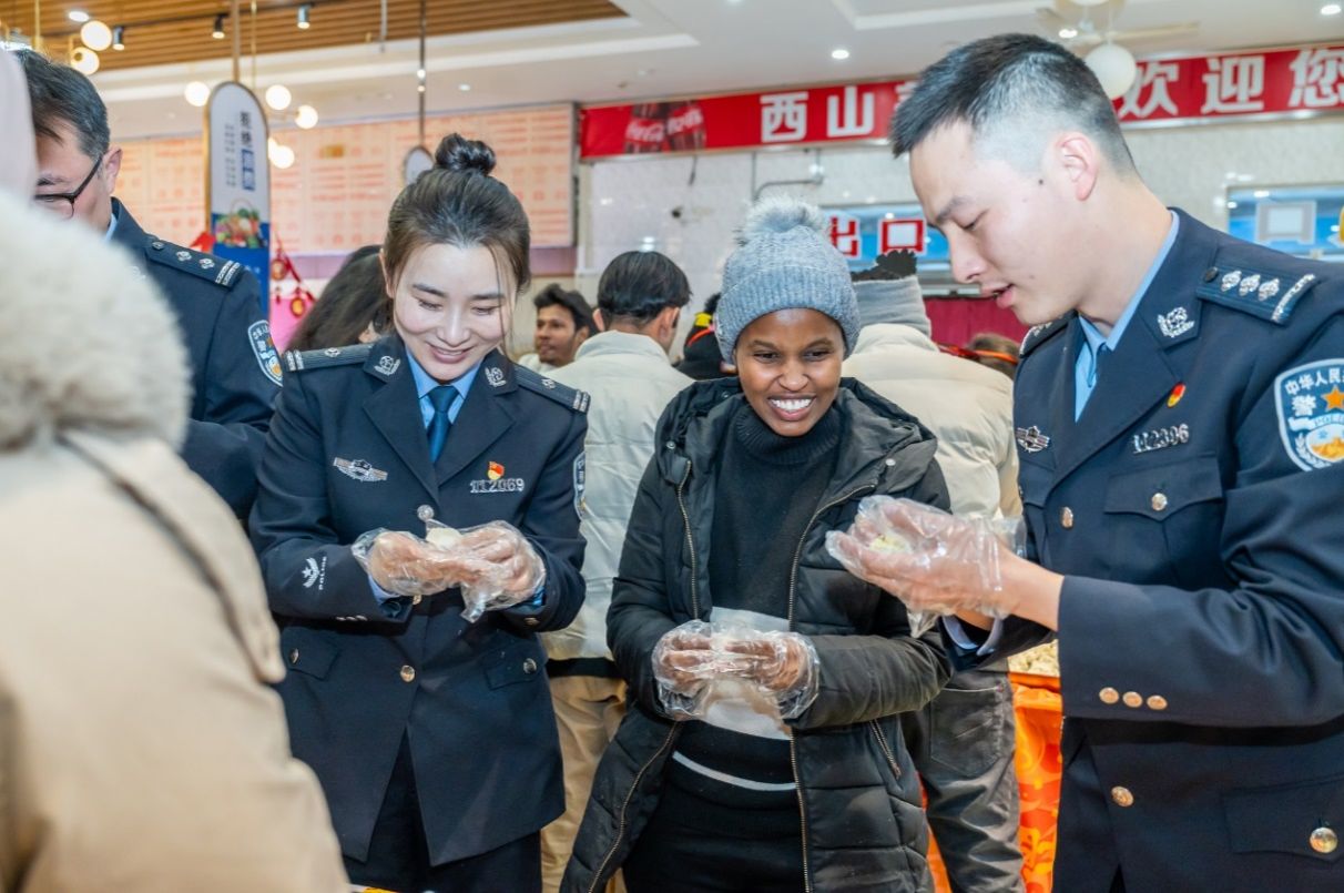 联欢会现场,留学生和教师们用歌舞、游戏等表达对乙巳农历新年的期待,活动还设置了写春联、剪窗花、包饺子等多个文化互动比赛环节。在写春联比赛中,留学生们挥毫泼墨,透露出对中国文化的热爱和尊重;在剪窗花比赛中,留学生们剪出了一个个精美的窗花作品,为即将到来的春节增添了喜庆气氛;在老师的指导下,留学生们学习包饺子,体验中国传统美食的制作过程。师生共同品尝饺子,分享劳动成果,交流中外饮食文化,送上新春祝福,气氛热闹。