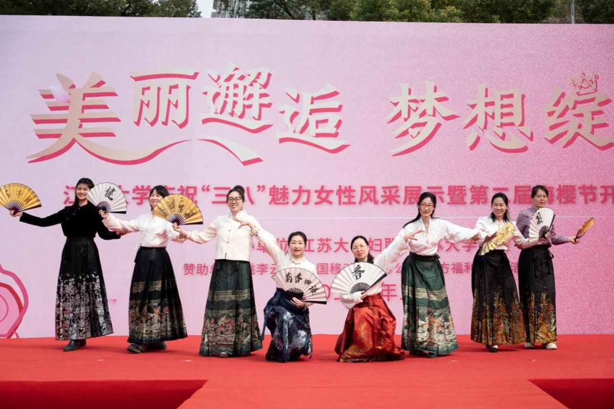 3月7日,乐鱼官方体育网站“美丽邂逅 梦想绽放”——庆“三八”魅力女性风采展示暨第二届梅樱节开幕式在梅园大道举行。来自学校各单位的女教工和女大学生组成33支队伍以“T台红毯秀”的形式,展示风采庆祝节日,也为全校女同胞献上美好祝福。