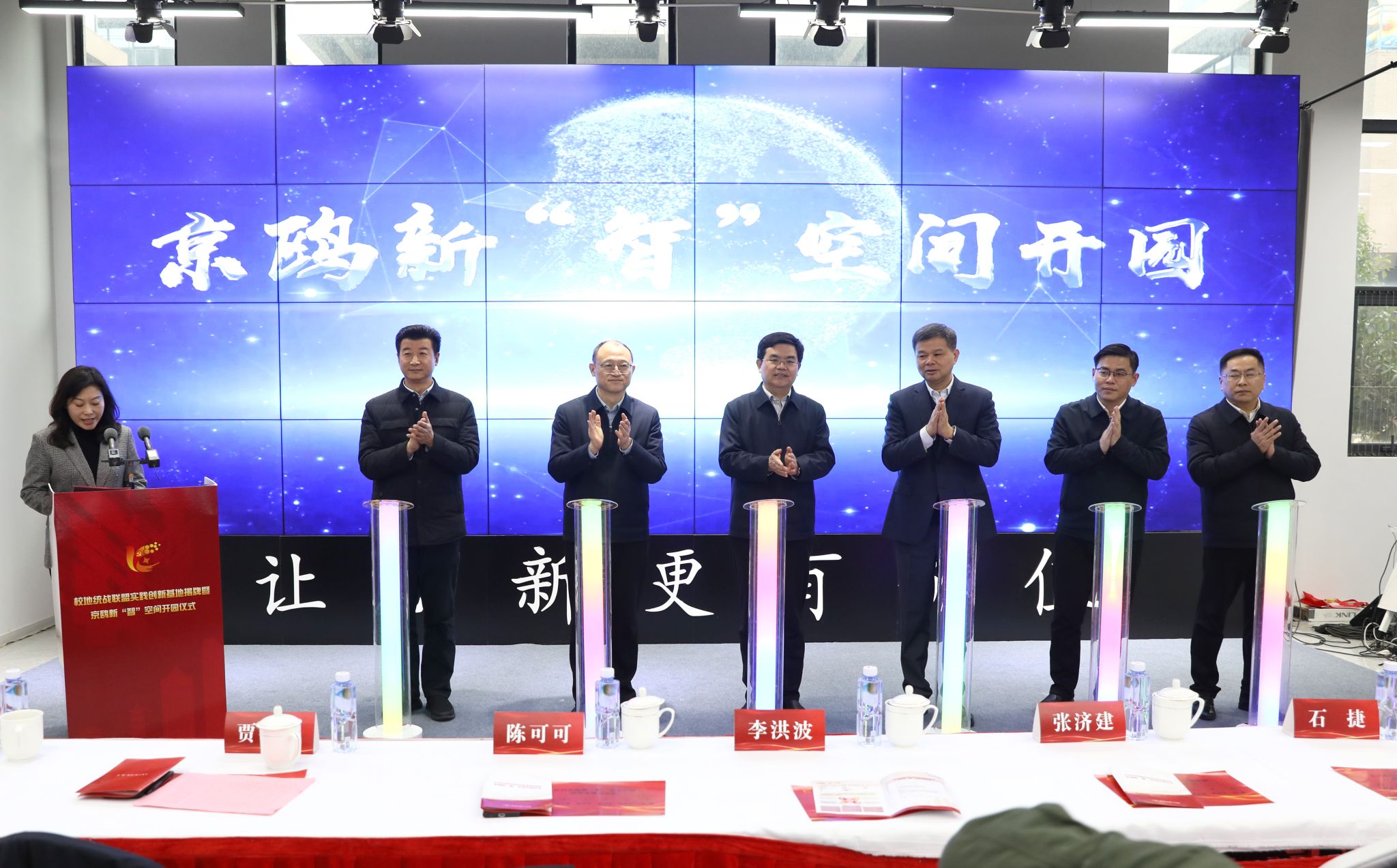近年来,学校党委统战部和京口区委统战部积极探索统战服务师生发展新途径、新方法,整合校地优势资源,构建“统战搭台、校地共建、融合发展”的工作新模式。为进一步放大联盟优势和共建效应,校地共同建设统战联盟实践创新基地,以“服务发展新质生产力”为着力点,打造约1800平米的京鸥新“智”空间,汇集创业孵化、亮点展示、创意交流等多种功能,畅通校地人才、项目联动渠道,促进产学研深度融合,为全校统战成员创新创业、合作交流、联谊交友提供舞台,推动学校统战工作水平再上新台阶。(党委统战部)