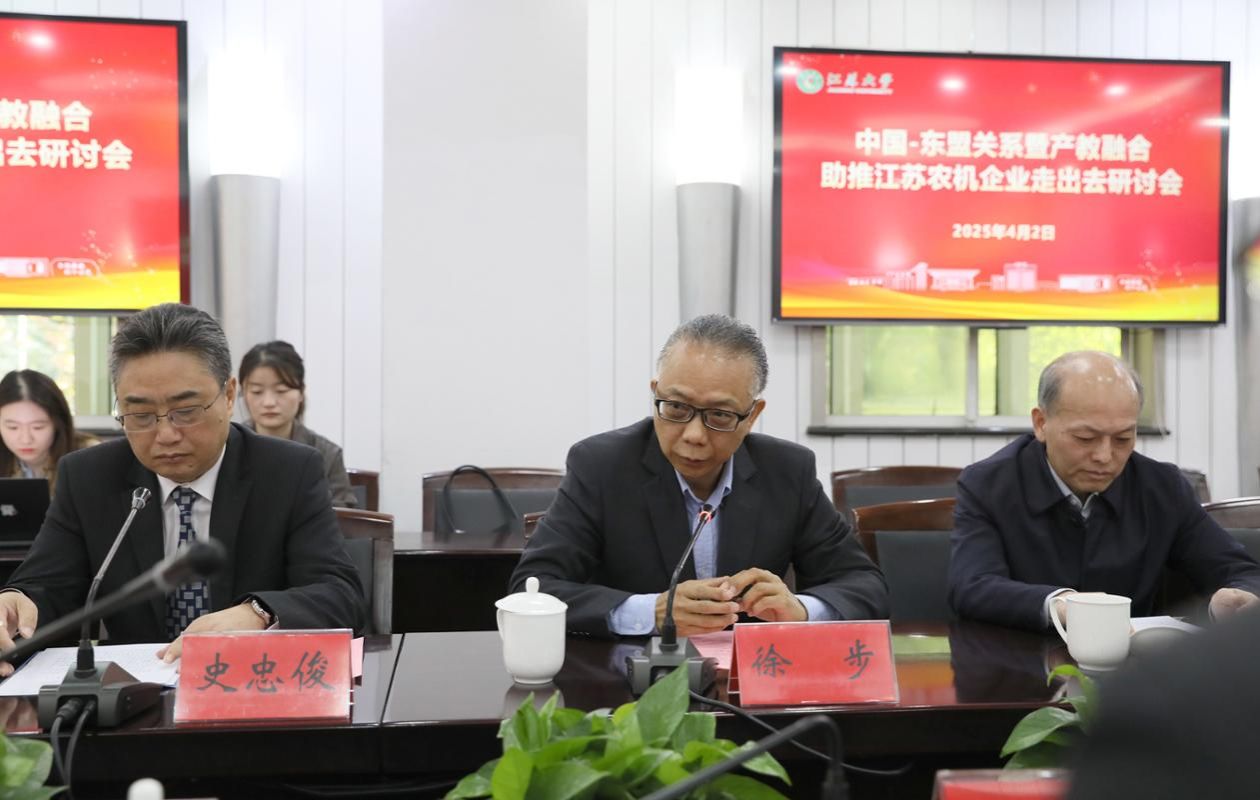 校长邢卫红、中国—东盟中心秘书长史忠俊、乐鱼官方体育网站原校长颜晓红、副校长蔡英凤、镇江市外办主任卢利林,中国—东盟中心、国际处、外国语学院、农业工程学院、智能农机装备理论与技术重点实验室、农业工程学部、食品与生物工程学院、流体机械工程技术研究中心等相关负责人,国防科技大学和南京大学相关领域专家学者,江苏沃得农机、江苏悦达智能农业装备有限公司、苏州久富农业机械有限公司、江苏江淮动力有限公司、江苏华源节水股份有限公司等企业代表出席会议参与研讨。会议由我校全球发展与安全研究院理事长徐步主持。
