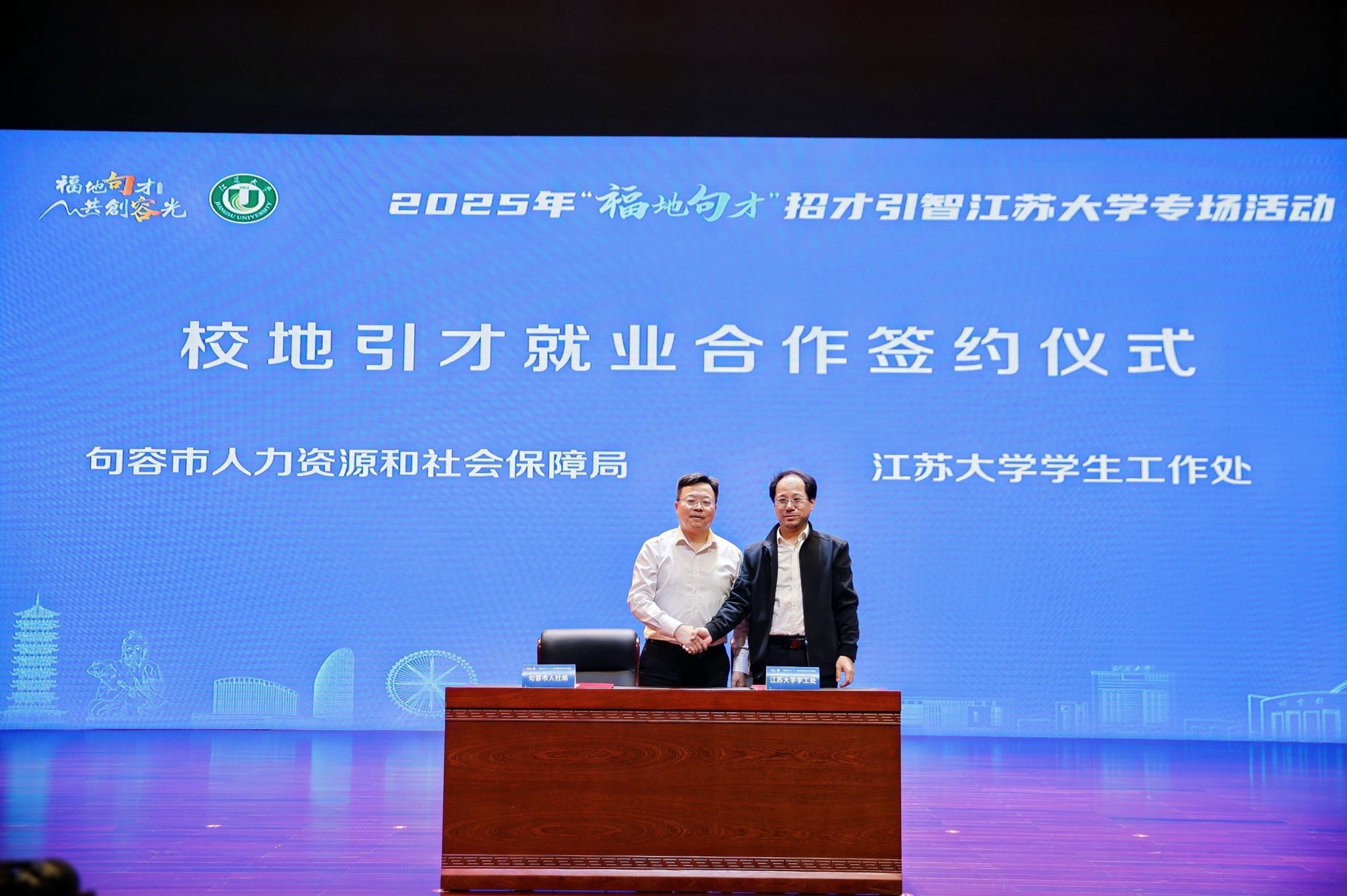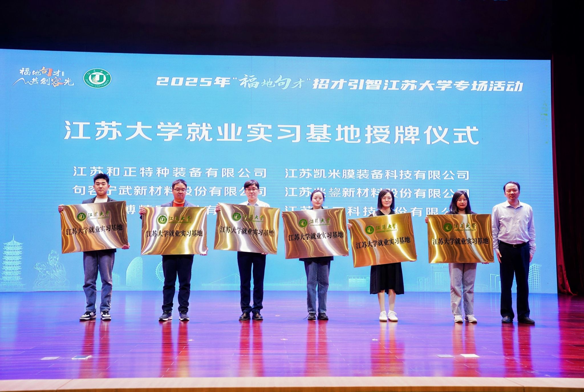 学校与句容市共同完成校地引才就业合作签约、引才使者聘任、就业实习基地授牌及人才服务驿站揭牌等,巩固校地合作关系,开启未来深入合作的新篇章。