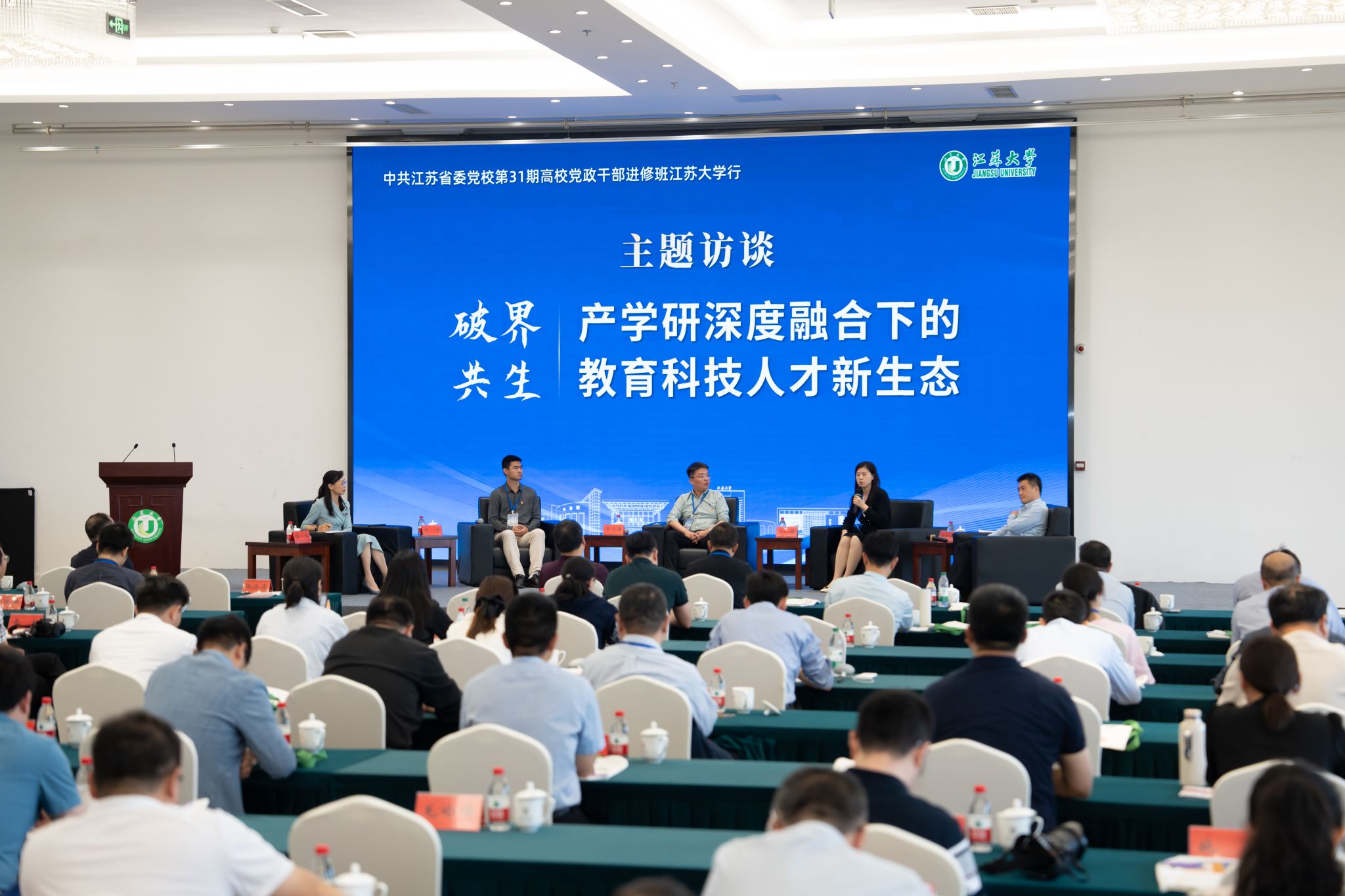 张济建致欢迎辞,简要介绍了学校的事业发展情况。他指出,产学研深度融合是推动教育链、人才链与产业链、创新链有机衔接的重要途径,本次校际交流为全省高校搭建了交流思想的平台,对构建教育科技人才新生态具有重要意义。他希望全体学员碰撞出智慧的火花,凝聚起发展的共识,共同探索产学研深度融合的新模式、新路径,为构建教育科技人才新生态贡献智慧和力量。