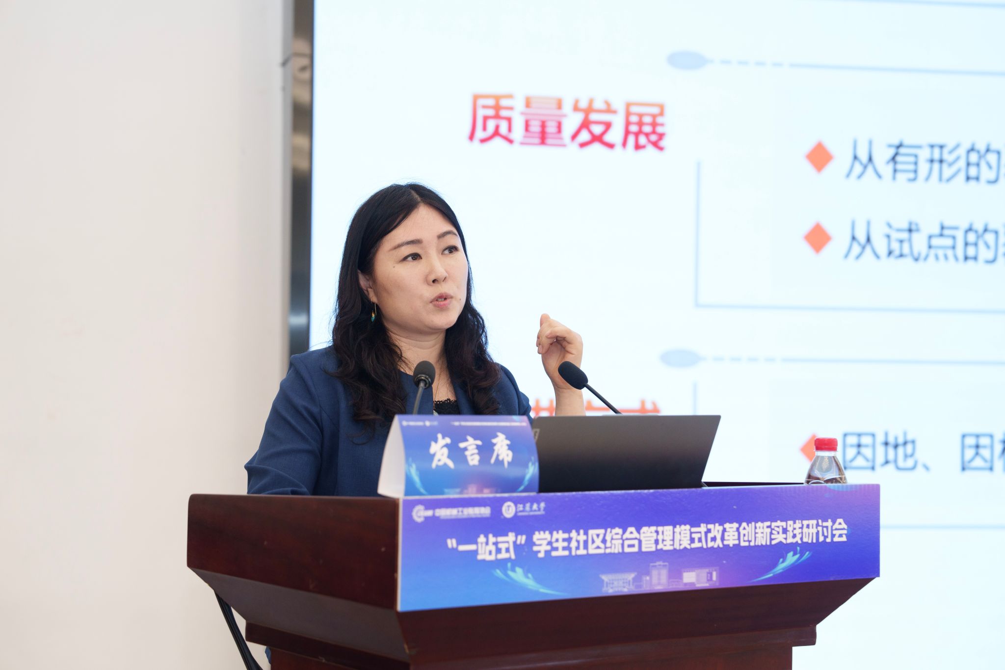 开幕式后,5位知名专家学者围绕“一站式”学生社区综合管理模式改革创新分别作主题报告,为推进“一站式”学生社区建设提供了宝贵参考。王慧敏系统阐述了全国高校思想政治工作网工作开展情况和数智赋能学生社区管理的创新应用与实践路径。苏州大学党委学生工作部部长董召勤立足高校“一站式”学生社区建设实践,针对共性难题提出了具有可操作性的解决方案。南京大学党委学生工作部副部长李兴华分享了“五个一”建设模式下构建师生成长共同体的创新经验。乐鱼官方体育网站党委学生工作部部长任泽中解读了“主治·共治·自治·智治”学生社区治理新模式的实践探索。金智教育研究院学生管理与服务中心主任谭利娟从社区育人视角,分享了高校数据应用建设的典型案例。