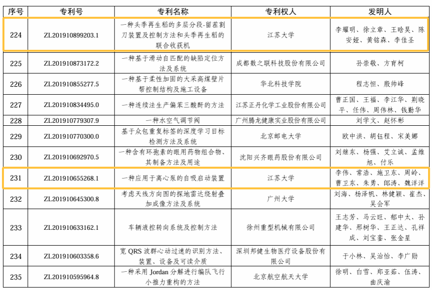 近日,国家知识产权局公布第二十五届中国专利奖授奖决定,李耀明团队专利“一种头季再生稻的多层分段-留茬割刀装置及控制方法和头季再生稻的联合收获机”、李伟团队专利“一种应用于离心泵的自吸启动装置”获评中国专利优秀奖。