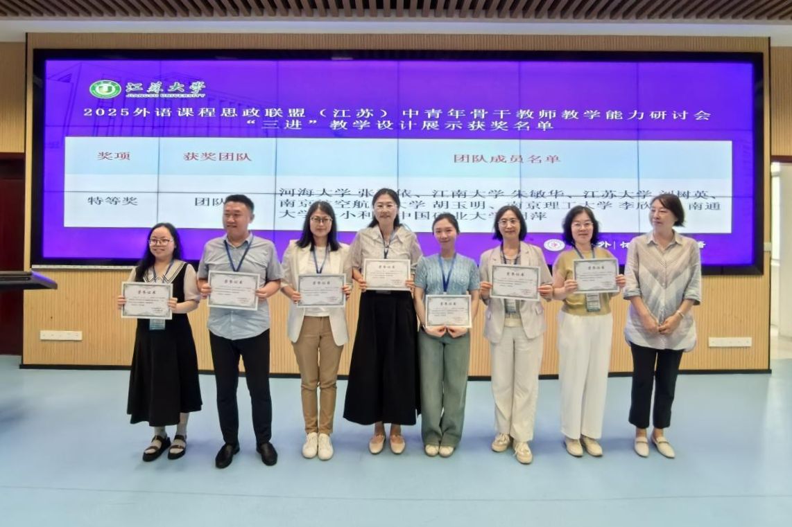 会上正式发布了外语课程思政联盟(江苏)LOGO。2023年,“外语课程思政四校联盟”正式成立;2024年,“外语课程思政四校联盟”首届中青年骨干教师教学能力研讨会成功举办;2025年,中国矿业大学、南通大学、乐鱼官方体育网站加入联盟,成立外语课程思政联盟(江苏)。
