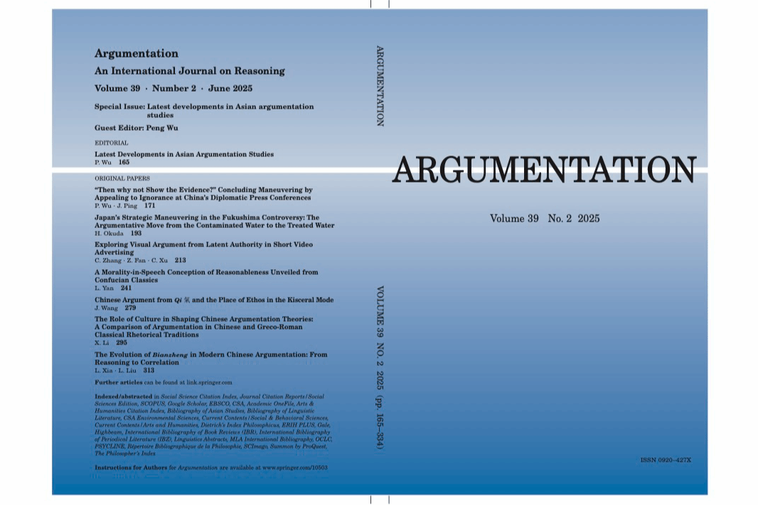 近日,国际论辩学权威期刊《论辩》(Argumentation)正式出版由我校教师吴鹏担任客座主编的特刊(special issue,2025年第2期)。