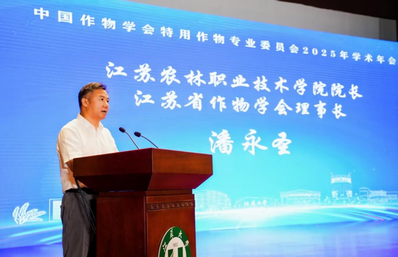 江苏农林职业技术学院院长、江苏省作物学会理事长潘永圣致辞,强调了特用作物在乡村振兴中的独特价值,呼吁产学研协同发力,促进产业高质量发展。