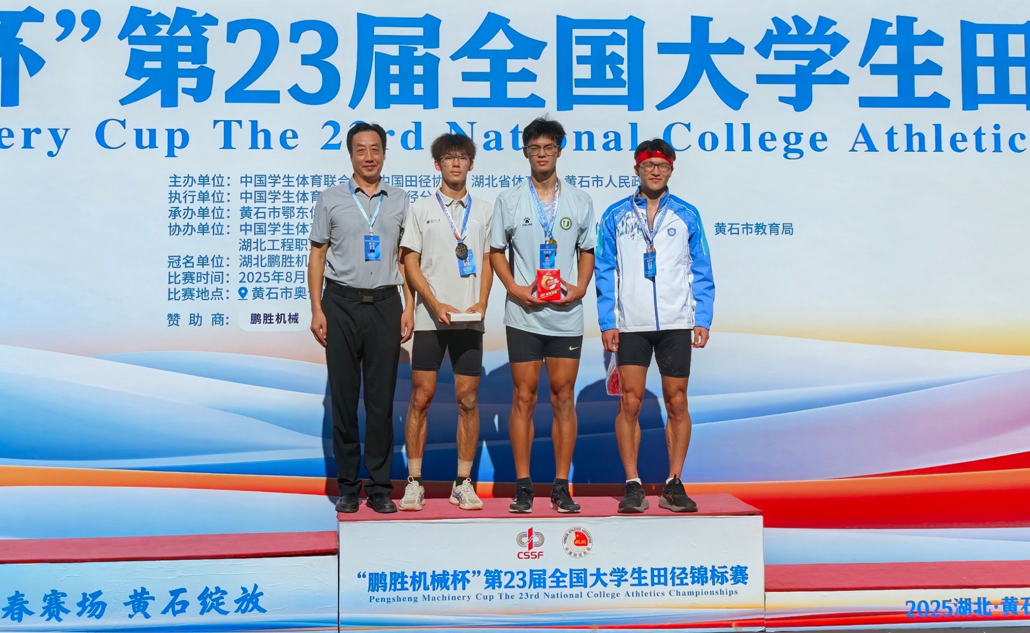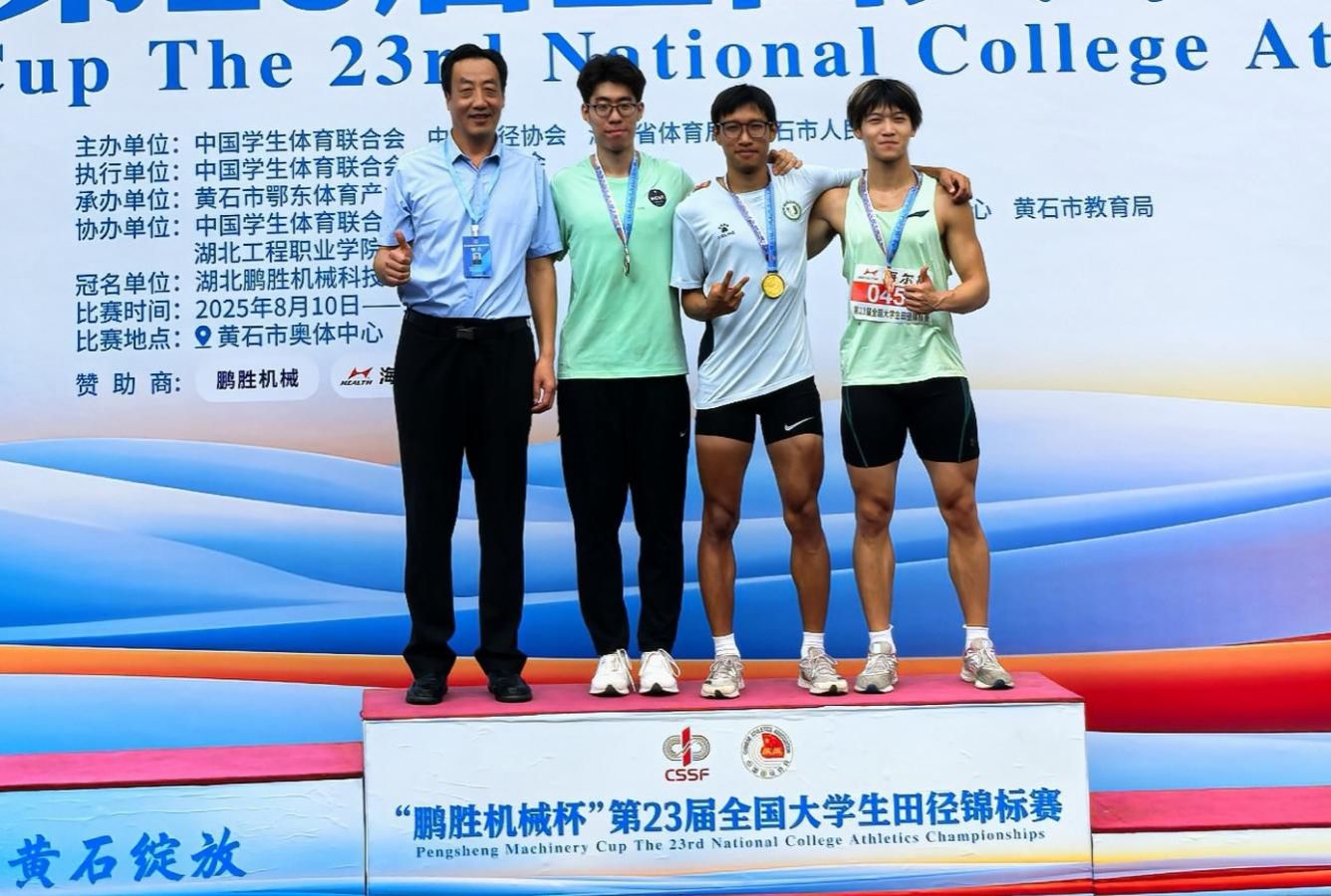 8月10日至15日,第23届全国大学生田径锦标赛在湖北黄石开赛。作为全国高校田径最高水平赛事,比赛汇聚490所院校的3649名运动员,在27个大项、161个小项中展开角逐。我校运动员表现出色,获得冠军两项、亚军一项,男子团体总分第二、男女团体总分第五。