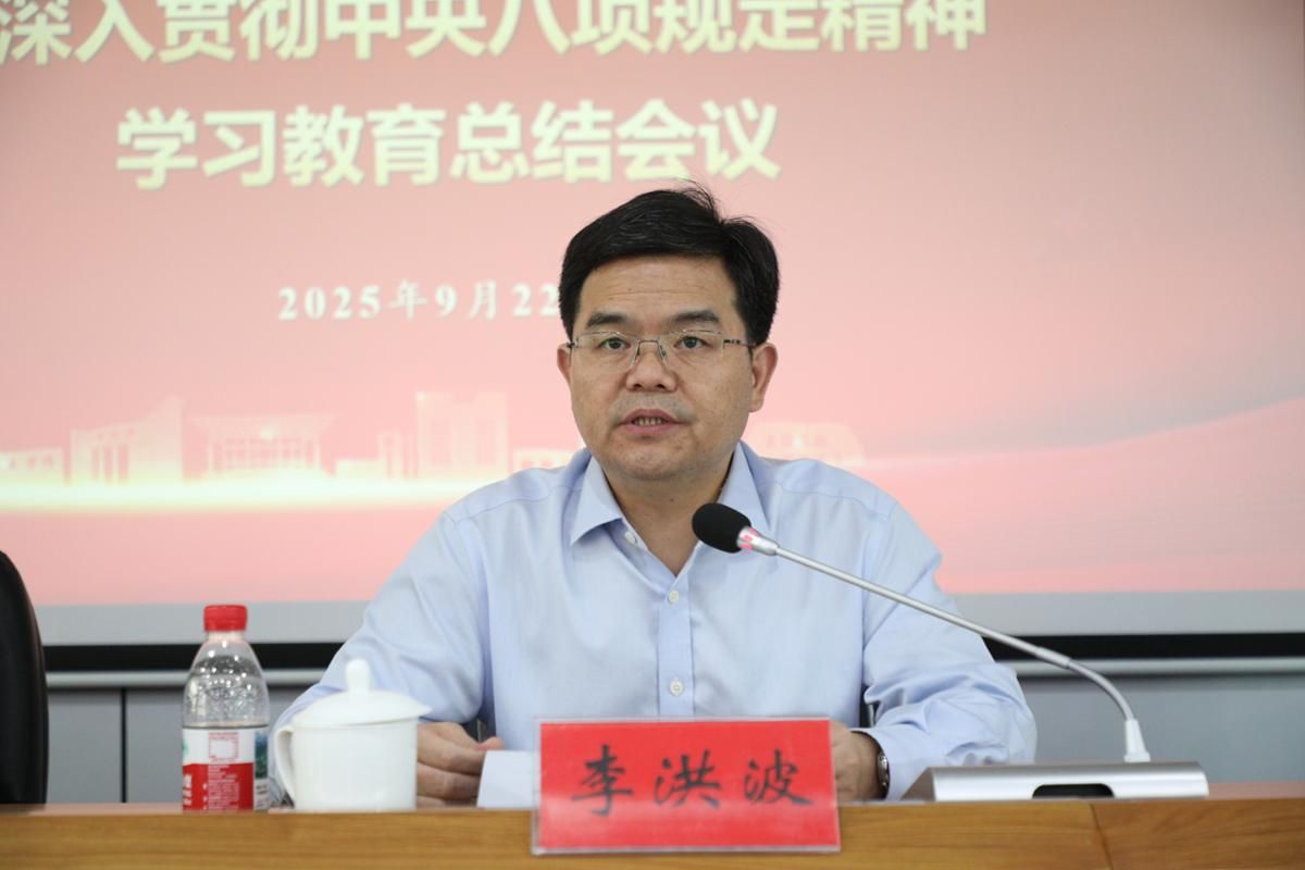 李洪波强调,学习教育结束不是作风建设的终点,而是新的起点,并就巩固深化学习教育成果、推动作风建设常态化长效化强调五点意见:一要筑牢思想根基,推动理论武装常态化、推动警示教育常态化、推动党员干部教育培训常态化,切实在深化认识、常学常新上持续用力;二要深化问题导向,持续深化问题查摆、聚焦重点难点攻坚、坚持开门教育,切实在常态纠治、精准施治上持续用力;三要注重制度建设,进一步完善制度体系、强化制度执行、优化工作机制,切实在完善体系、强化执行上持续用力;四要聚焦事业发展,弘扬教书育人新风尚、构筑党建引领新格局、激活事业发展新动能,切实在成果转化、担当作为上持续用力;五要压实政治责任,坚决扛起主体责任、着力提升监督质效,切实在以上率下、严管严治上持续用力。