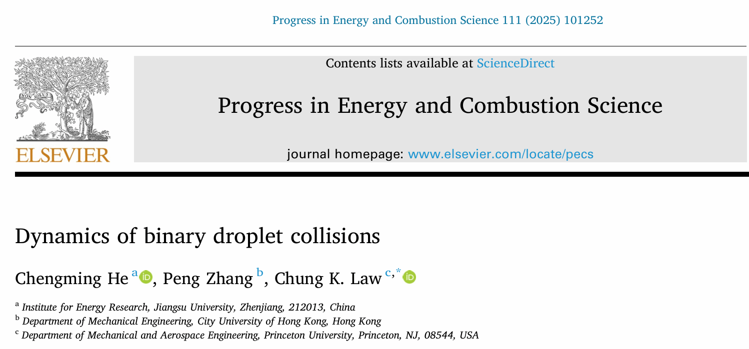 近日,能源研究院金山青年特聘教授何成明联合香港城市大学副教授张鹏及美国国家工程院院士、普林斯顿大学教授Chung K. Law在能源领域国际顶级期刊Progress in Energy and Combustion Science上发表题为Dynamics of binary droplet collisions(《二元液滴碰撞动力学》)的综述论文。乐鱼官方体育网站为第一完成单位,也是学校首次在该能源领域顶刊上发表文章。