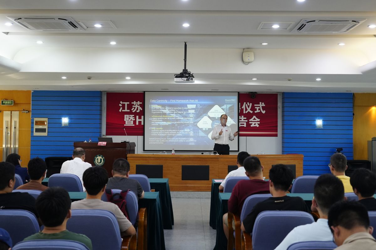 互动环节,现场师生踊跃提问,气氛热烈。哈西斯就数字孪生落地挑战、数据治理及未来工程师能力要求等问题作解答。