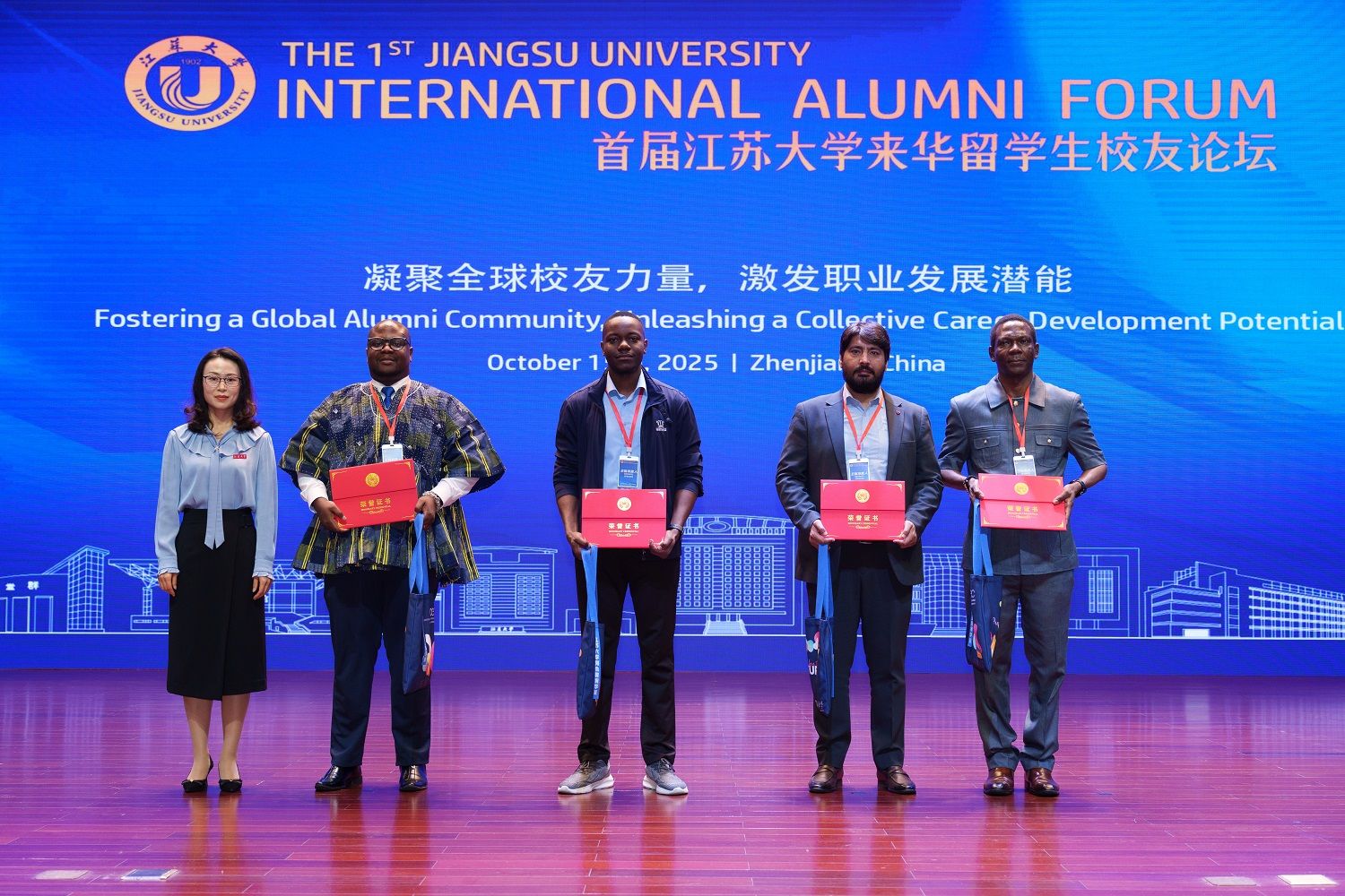 来自加纳、喀麦隆、巴基斯坦的四位优秀来华留学生校友代表埃里克·亚·纳米塞、约瑟夫·乔纳森·马古阿、谢赫·法尔汗·阿什拉夫和塞洛姆·姚-赛·所罗门·阿达德结合自身在我校学习和在其他国内高校工作的经历,分享了在学术研究、职业发展和跨文化交流方面的经验与体会。他们表示,乐鱼官方体育网站的学习环境和丰富实践机会为个人成长和职业发展提供了坚实基础,也激励他们积极参与校友网络建设,推动中外学术与职业交流,为全球校友事业发展贡献力量。