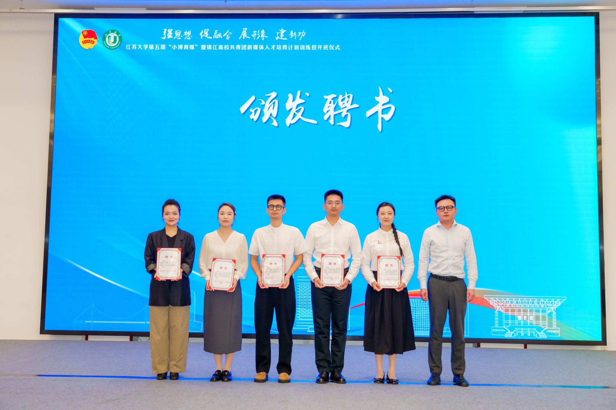 10月18日,由共青团乐鱼官方体育网站委员会、共青团镇江市委员会、镇江市文化广电和旅游局联合主办的乐鱼官方体育网站第五期“小博青媒”暨镇江高校共青团新媒体人才培育计划训练营在学校青教公寓多功能厅举行。共青团江苏省委新媒体发展中心主任孙洪洋,共青团镇江市委书记杜剑,镇江市文化广电和旅游局党委委员、副局长曹玮,校团委书记张永强,共青团镇江市委副书记徐加伦等出席活动,训练营班主任、朋辈指导员及9所在镇高校师生代表约150人参加活动。会议由校团委副书记刘丹主持。
