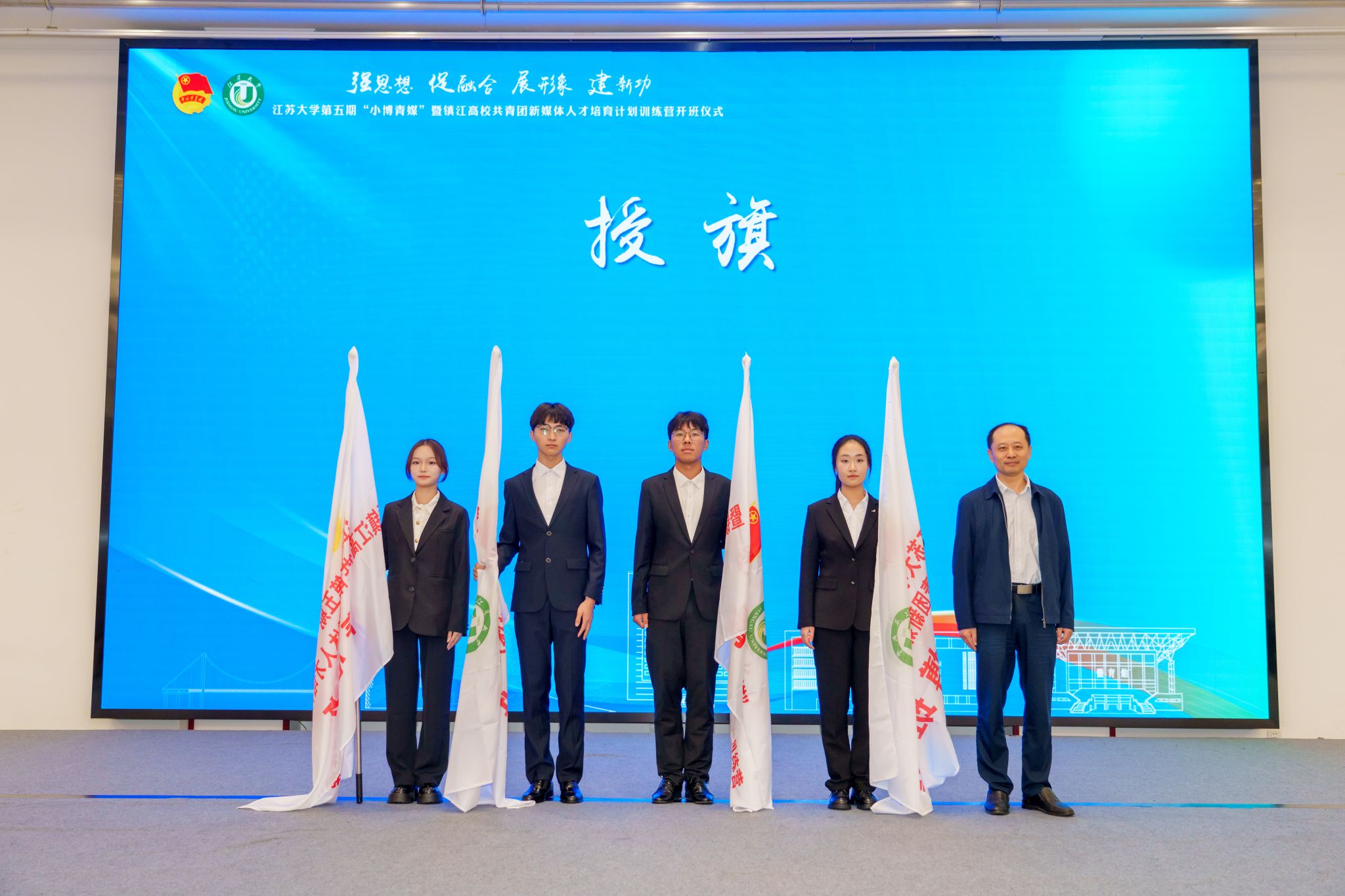 杜剑为训练营导师、班主任颁发聘书,曹玮为训练营学员代表授旗,刘丹作训练营筹备工作情况报告。