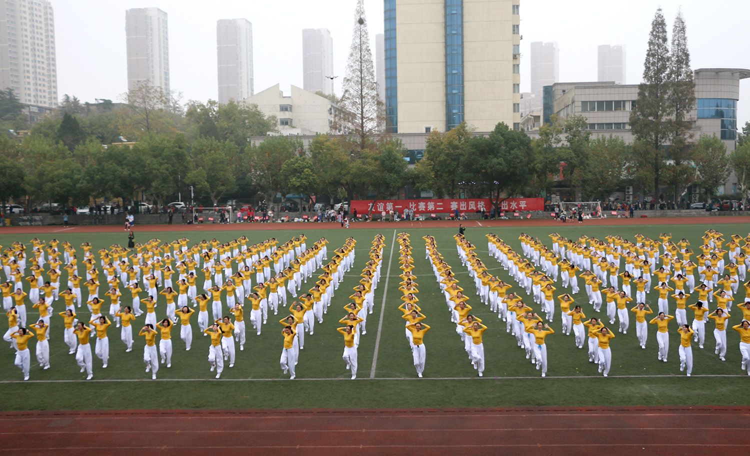 开幕式上,师生进行了舞龙舞狮、武术、民族舞蹈、团体操、健身舞等文体表演。