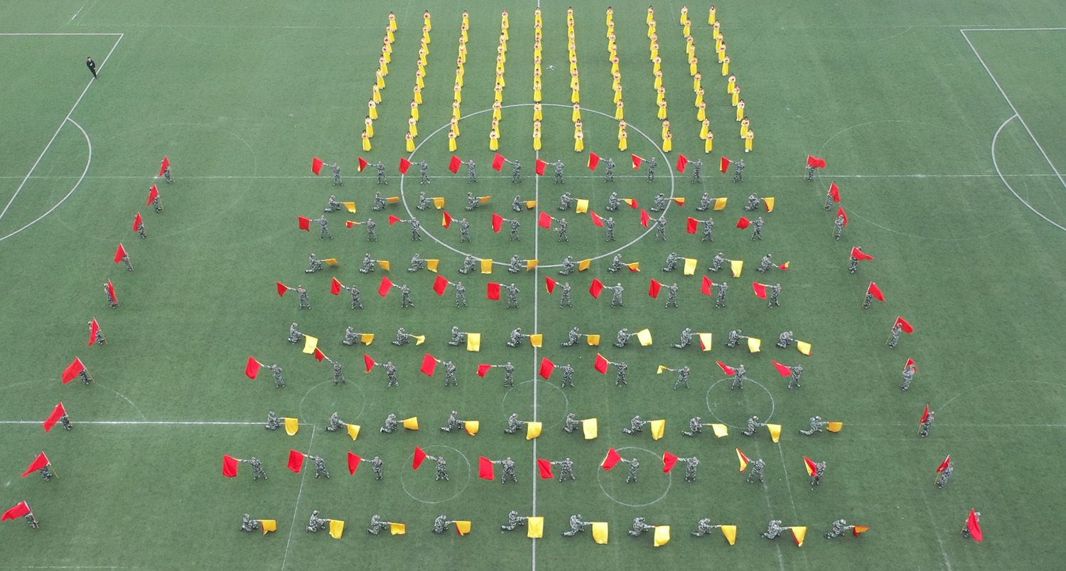 伴着整齐的步伐和口号,裁判员和各学院、分工会运动员方阵依次入场。列队完毕,升国旗,奏唱国歌。