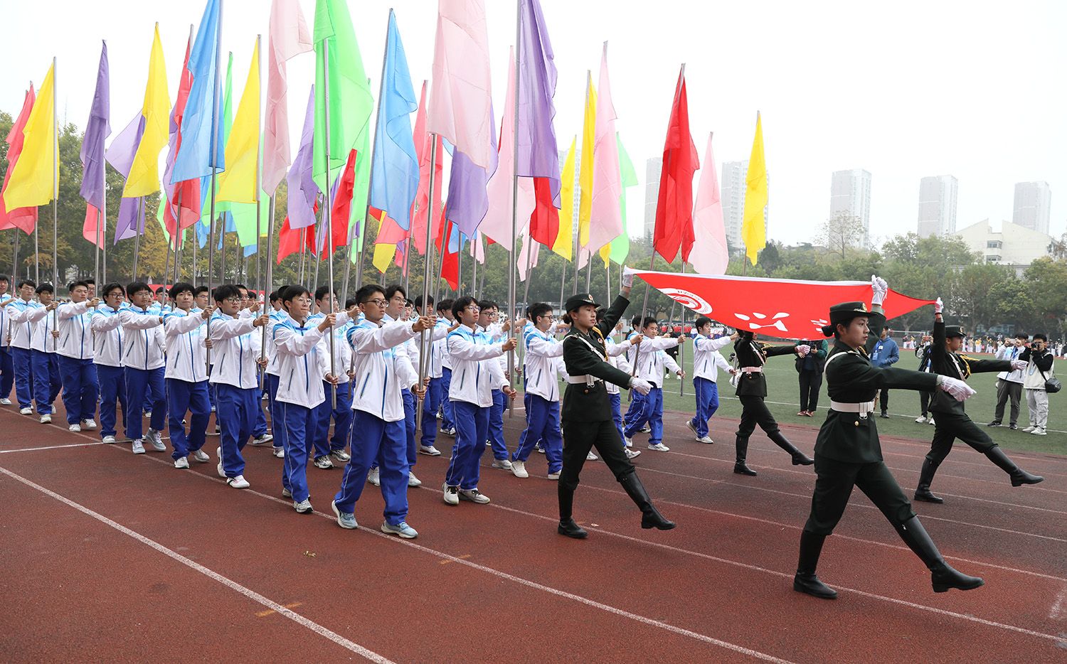 11月11日,乐鱼官方体育网站第二十一届运动会在学校东山运动场开幕。全体在校校领导、党委常委,各职能部门和学院主要负责人,各单位师生运动员等参加开幕式。