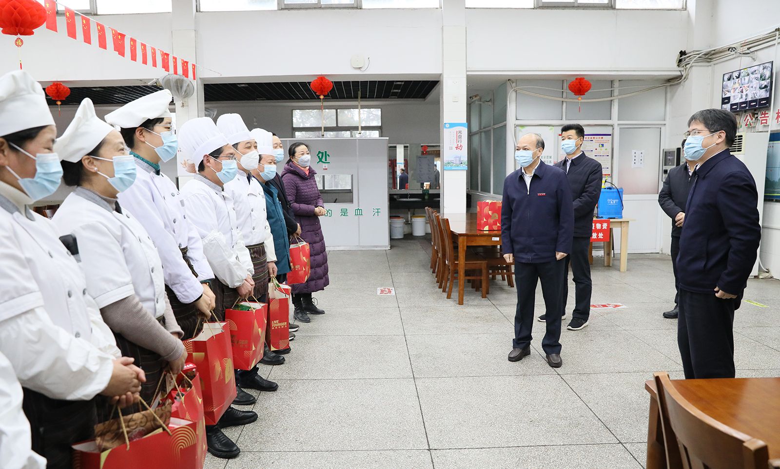 校长颜晓红、副校长邹小波一行先后来到学校大门执勤点、实验动物中心、35kv变电所、一食堂,看望慰问坚守工作岗位的教职工,为他们送去新春祝福。每到一处,校领导都与春节期间坚守在岗的保卫、后勤、实验工作人员亲切交流并送上慰问品,感谢他们的辛勤守护和积极贡献,感谢大家为校园安宁和师生生活付出的辛勤劳动。