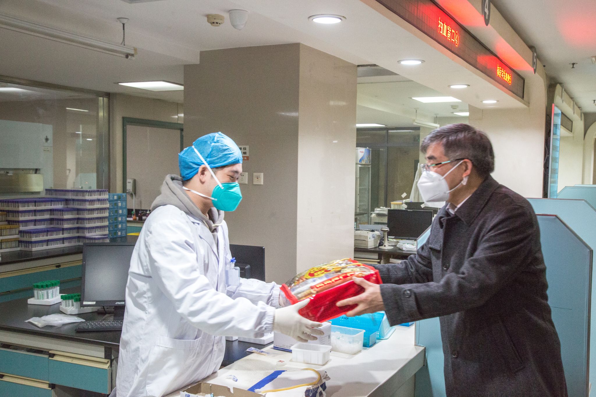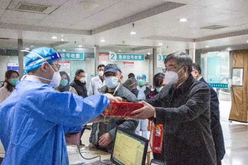 寅虎辞旧岁,卯兔迎新春。1月22日上午,农历兔年大年初一,校党委书记袁寿其,校党委常委、副校长、院党委书记张济建,来到附属医院看望慰问春节期间坚守在门诊一站式服务台、急诊中心、检验、药房等一线岗位的医务人员,送去新春的问候和真挚的祝福,感谢他们默默无闻的无私奉献,希望他们注意身体,认真值守,确保春节期间的医疗保障服务安全有序运转,以实际行动为广大人民群众健康保驾护航。