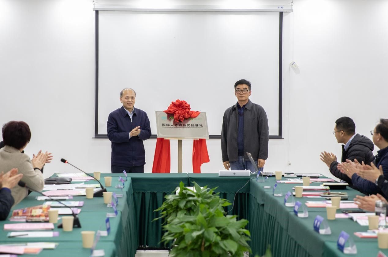 会上,姜其瑜和谢涛对各自企业的特色进行介绍,颜晓红分别与两位企业代表为“国际人才创新实践基地”揭牌。